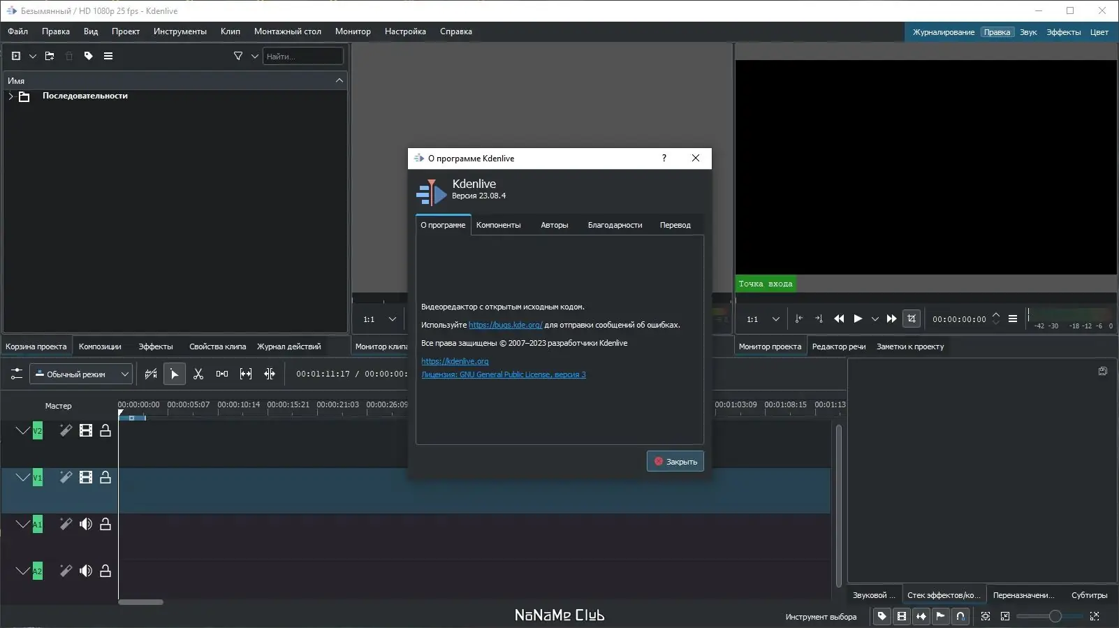 Это мощное приложение обеспечивает широкий спектр возможностей для создания и редактирования видео. Поддержка всех популярных аудио и видео форматов, включая QuickTime, AVI, WMV, MPEG, HDV и AVCHD, делает его универсальным инструментом для различных задач. Kdenlive может быть использован как студия для полноценного монтажа, благодаря возможностям автоматической сборки слайд-шоу, многочисленным эффектам и эффектам переходов. Встроенный редактор заголовков и гибкие инструменты для работы с видео, аудио и графикой позволяют создавать качественные проекты без необходимости использования дополнительного софта.
