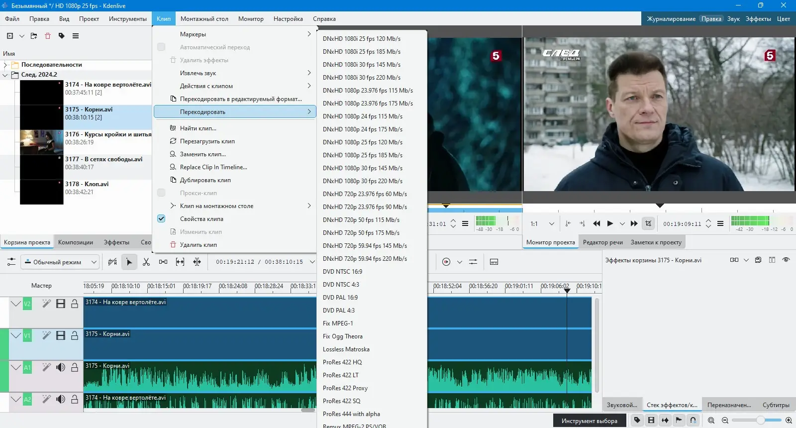- Резка клипов и управление временной шкалой