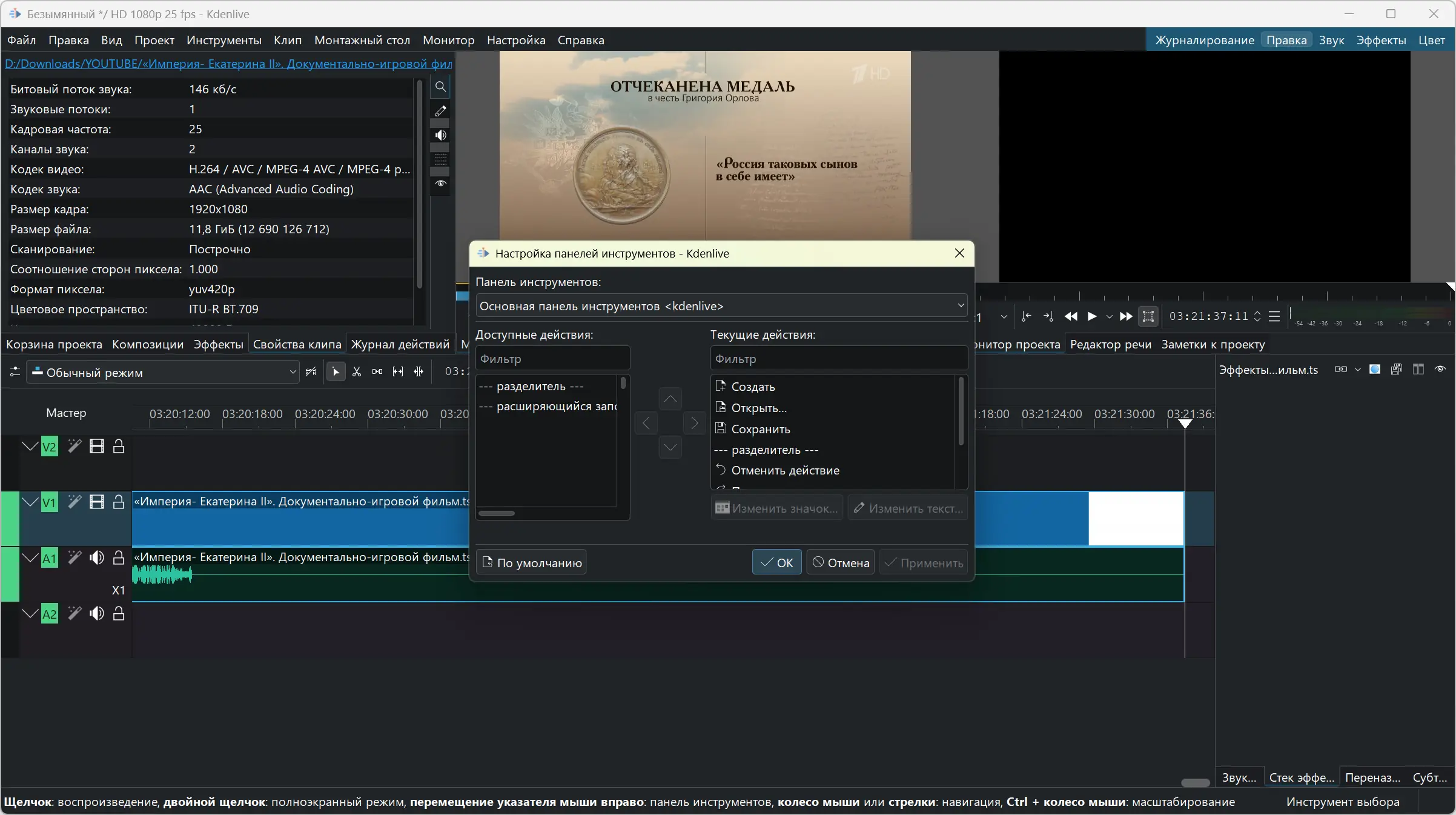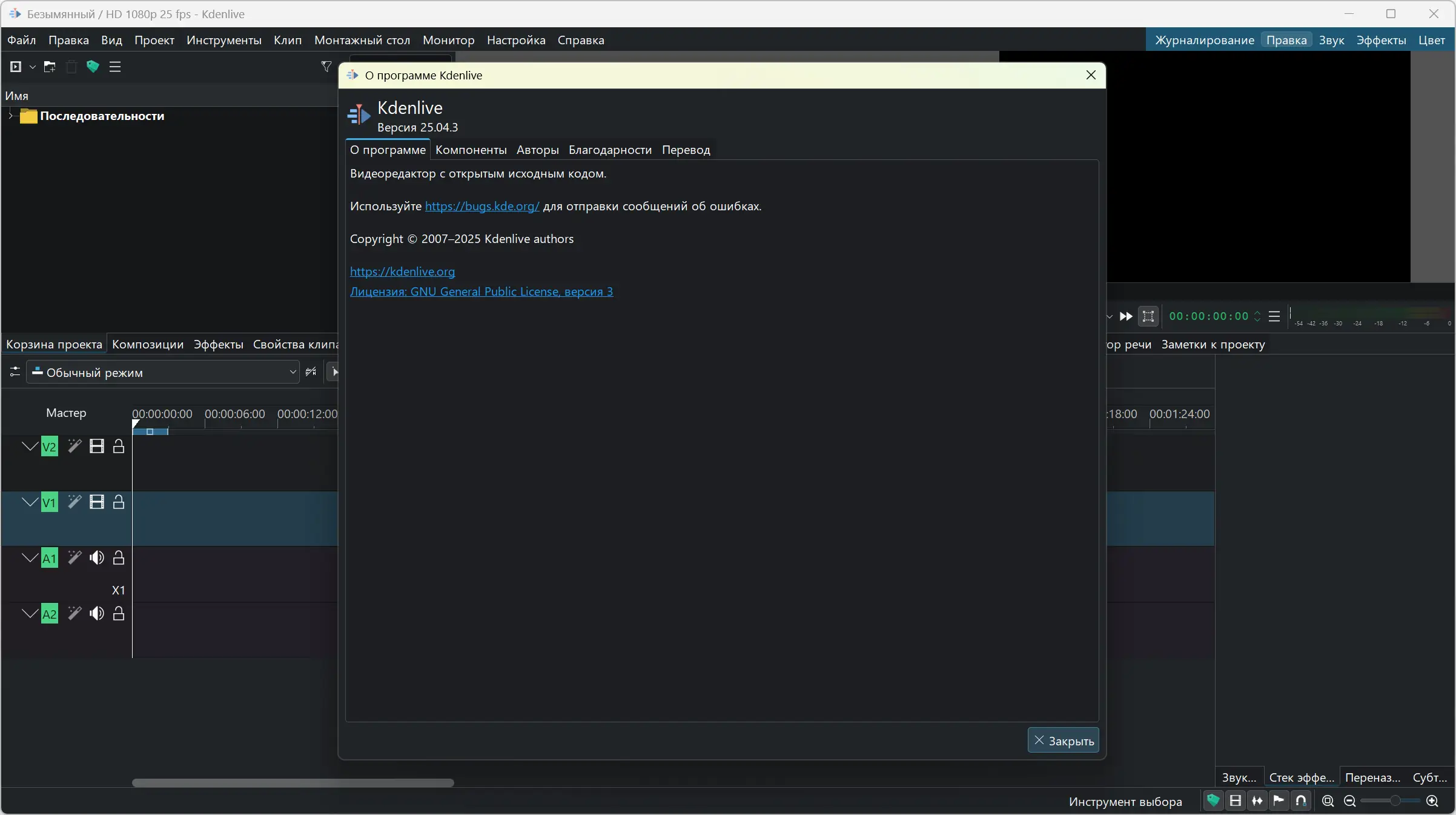 Это мощное программное обеспечение для редактирования видео, доступное бесплатно, которое поддерживает работу на Windows 7, 8/8.1, 10 и 11 на x32 и x64 Bit. Кdenlive позволяет использовать любые аудио и видео форматы, включая QuickTime, AVI, WMV, MPEG и многие другие. Программа идеально подходит для создания профессиональных видеопроектов, теле- и кино монтажей, а также для автоматического создания слайд-шоу из изображений. Встроенные инструменты позволяют легко перемещать, кадрировать, удалять фрагменты, добавлять эффекты, переходы, титры и музыку.