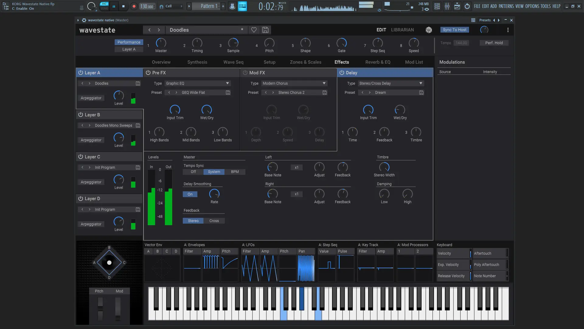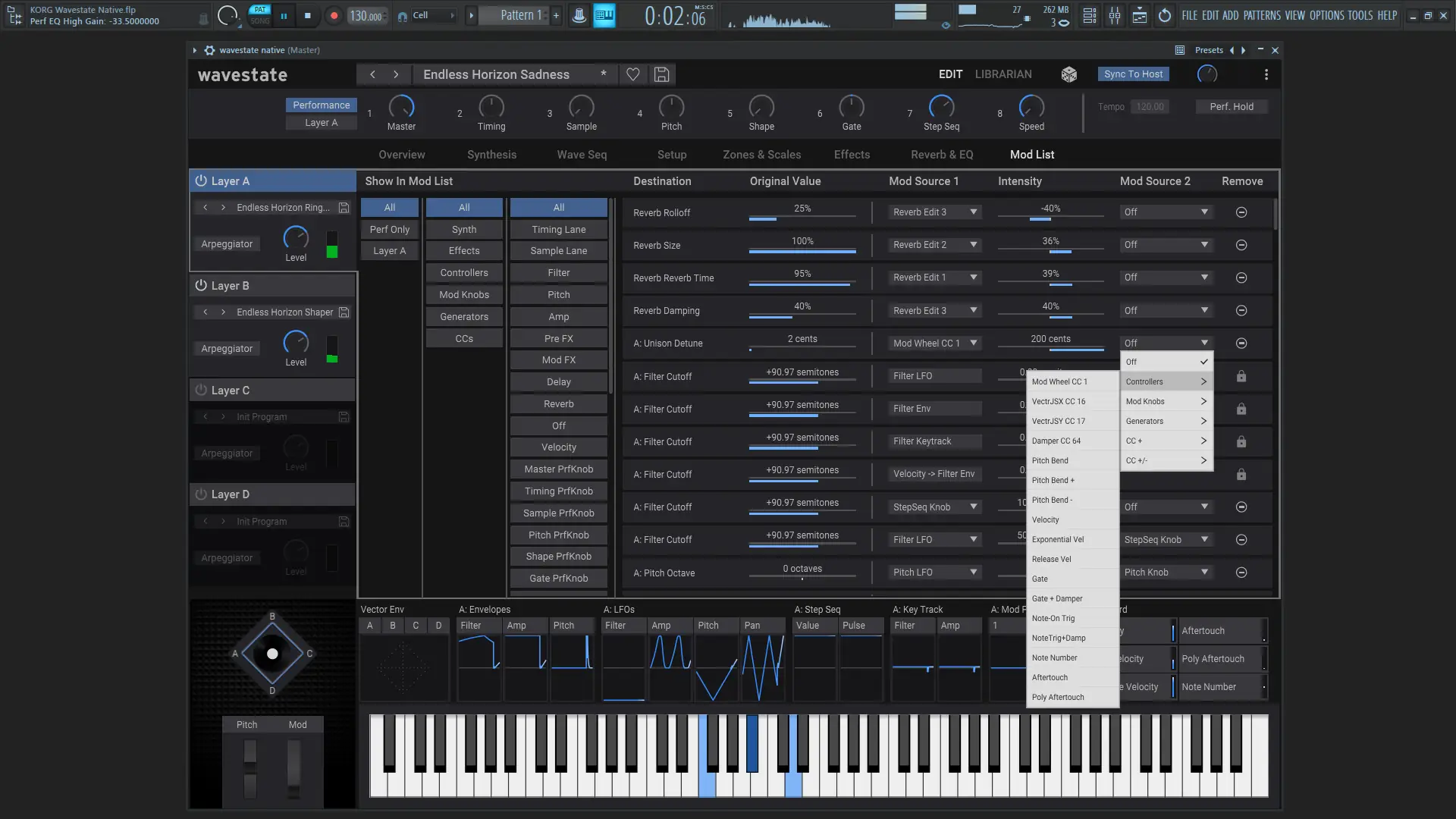 - 64 сырых стереозвучания, разделённых на 4 слоя с управлением Vector
