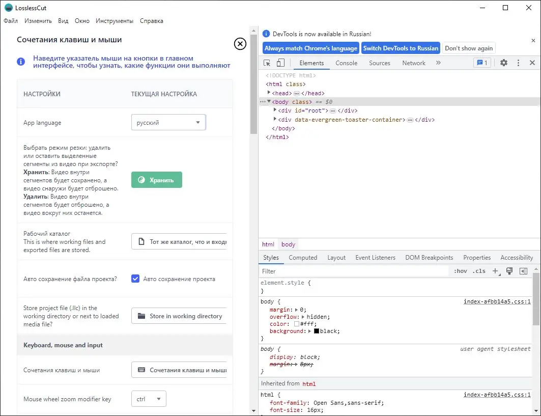 LosslessCut основан на Chromium и использует возможности FFmpeg библиотек для воспроизведения и редактирования мультимедийных файлов. Он позволяет делать обрезку по диапазонам, сливать выбранные сегменты и файлы с одинаковыми кодеками без потерь. Также есть возможность извлекать без потерь все потоки данных, а ещё делать полноразмерные снимки видео в форматах JPEG и PNG. Поддерживаются многочисленные форматы, такие как MP4, MOV, WebM, MKV, MP3, AAC, WAV и другие, что расширяет границы работ. Программа может работать как в оконном, так и в полноэкранном режиме, имеет поддержку горячих клавиш и сохраняет настройки в пользовательской папке, что обеспечивает удобство и гибкость в работе.
