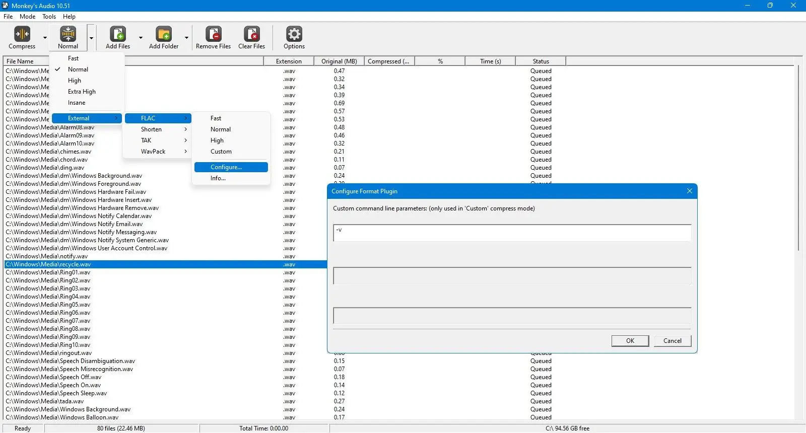 - Конвертация в и из форматов Rkau, Wavpack, Shorten, a также поддержка внешних кодировщиков MP3 и OGG
