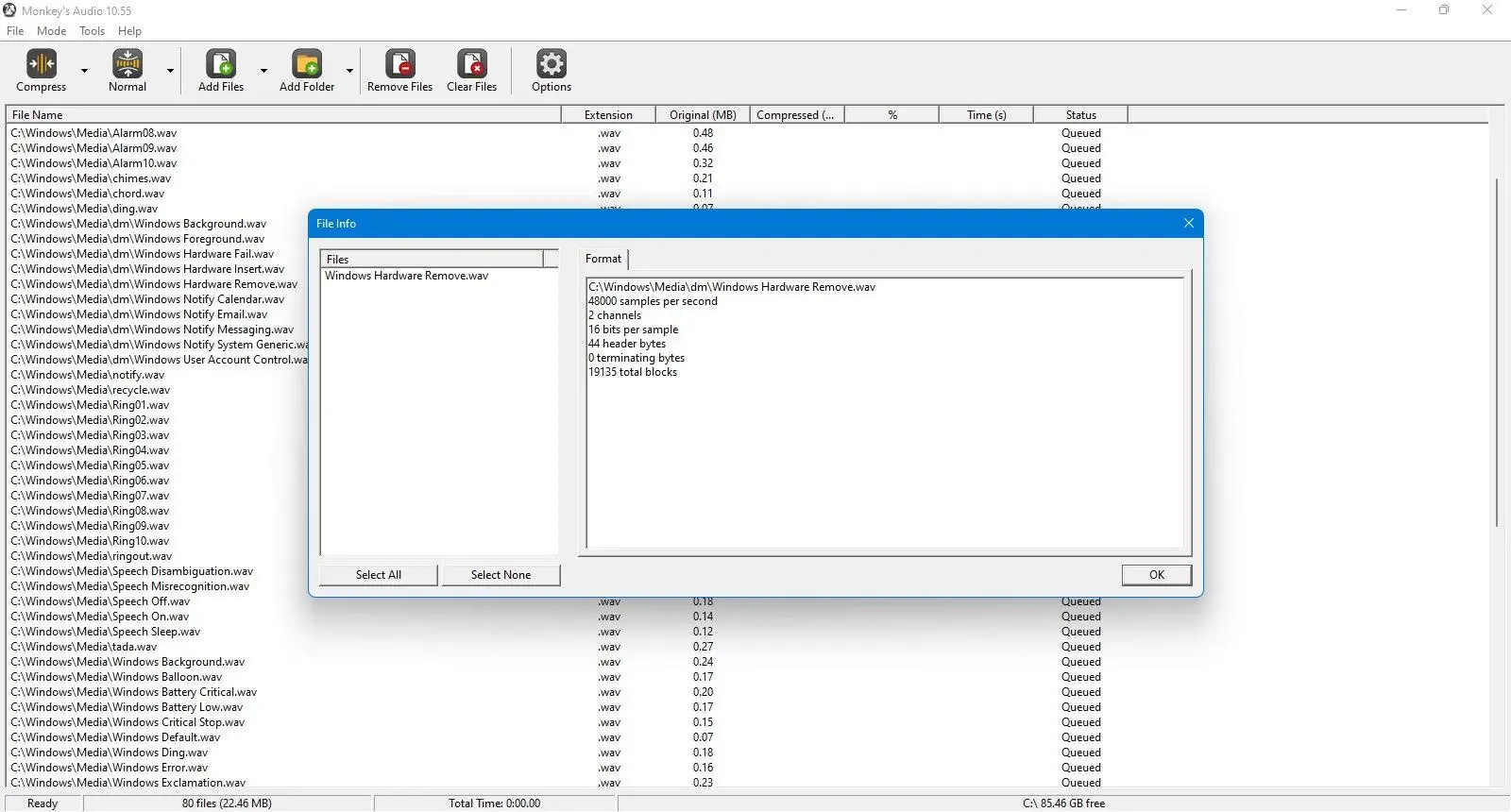 Monkey’s Audio — это мощная утилита для сжатия цифровых аудиофайлов без потерь качества в собственном формате APE. Программа позволяет сохранять первичное качество звука, одновременно обеспечивая значительную экономию места хранения.