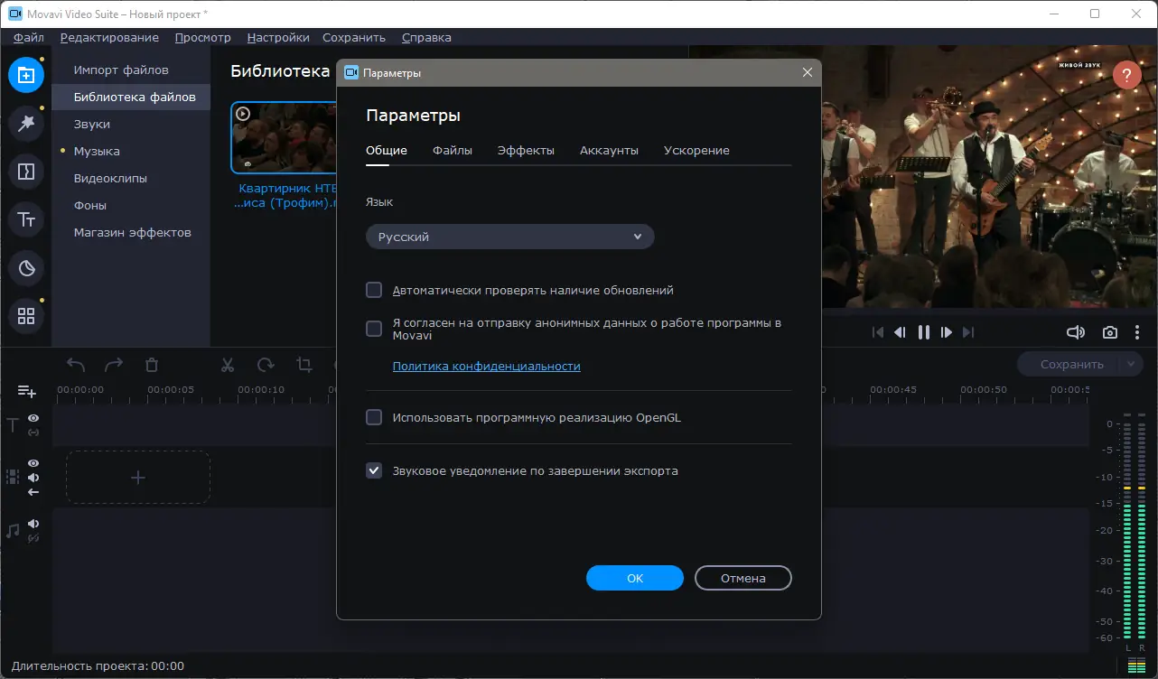 - Экспорт готовых видео: загрузка на платформы, сохранение в популярных форматах, запись на диски.
