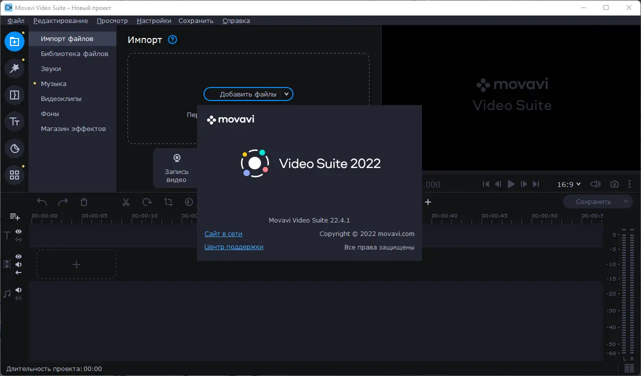 Movavi Video Suite — мощный мультимедийный комплекс для создания, обработки и редактирования видео на русском языке, идеально подходящий как для новичков, так и для опытных пользователей. Программа объединяет все необходимые инструменты для профессиональной работы с видео, аудио, изображениями и титрами, позволяя реализовать любые креативные идеи.