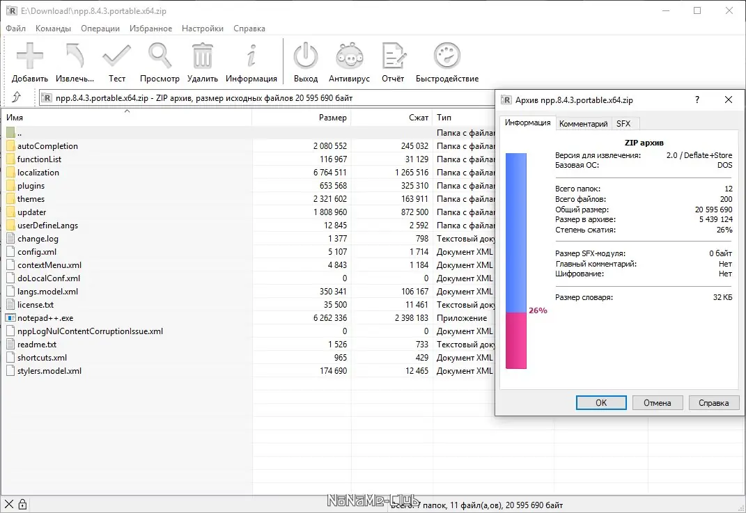 Для удобства пользователей разработана портативная версия, которая не требует установки и может запускаться с любого носителя. В комплект входят архивы с проверенные разработчиком файлами, обеспечивающими высокую степень сжатия и сохранность данных. Доступны версии для 32 и 64-битных систем.
