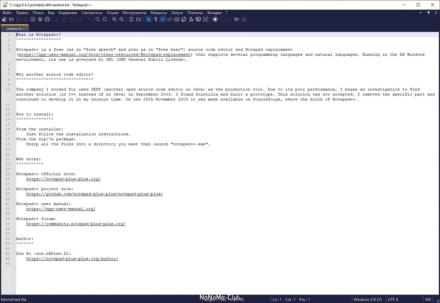 Notepad++ — бесплатный редактор текстовых файлов, значительно превосходящий встроенный Блокнот по функциональности и возможностям. Поддерживает синтаксис множества языков программирования, что делает его идеально подходящим для разработчиков и специалистов по редактированию текста. Программа предназначена для операционной системы MS Windows и основана на компоненте Scintilla, написанной на C++ с использованием Win32 API и STL, что обеспечивает высокую скорость работы при минимальных размерах файла. Распространяется под лицензией GPL, делая её полностью бесплатной для пользователей.