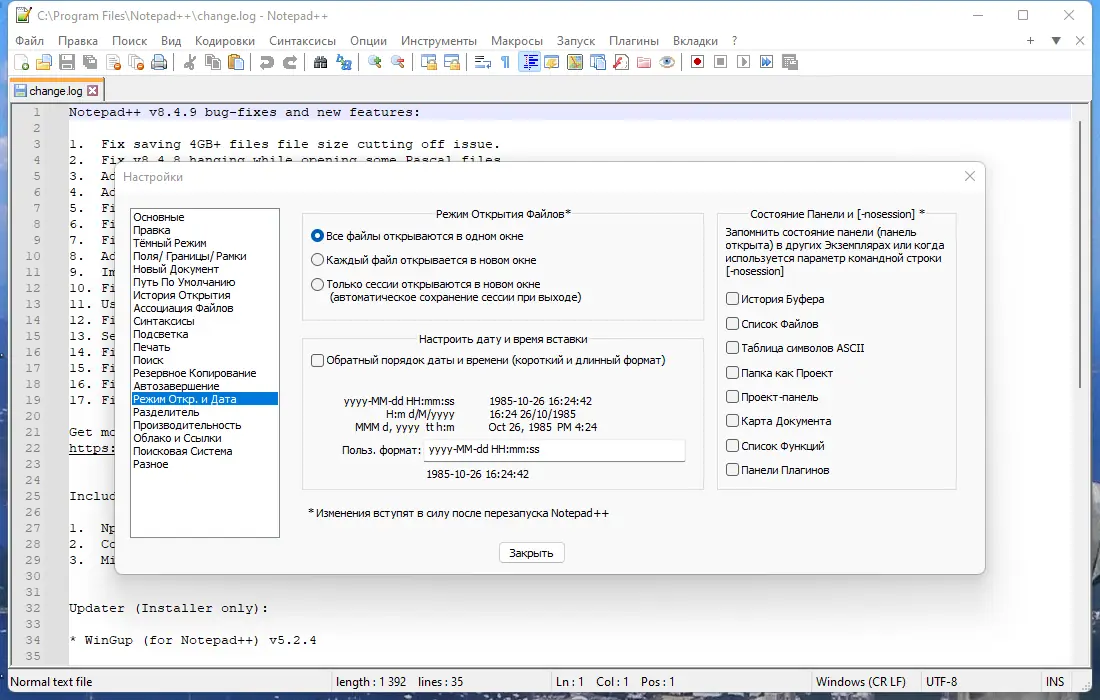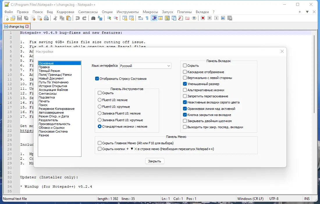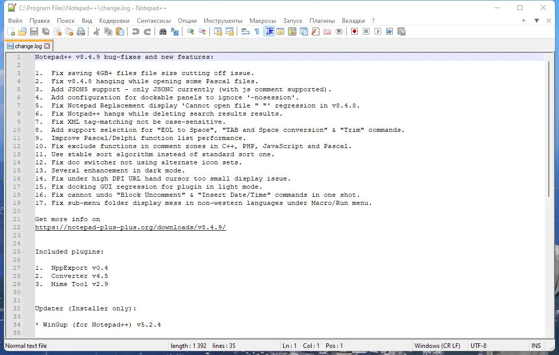 В последней версии Notepad++ реализованы исправления ошибок и новые функции, повышающие стабильность и удобство работы: