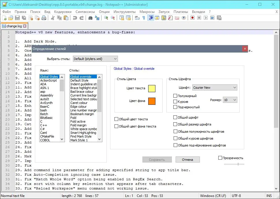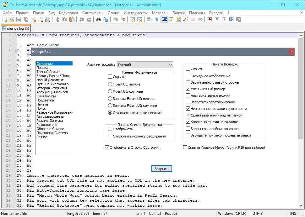 Для стабильной работы Notepad++ рекомендуется иметь следующие системные параметры: