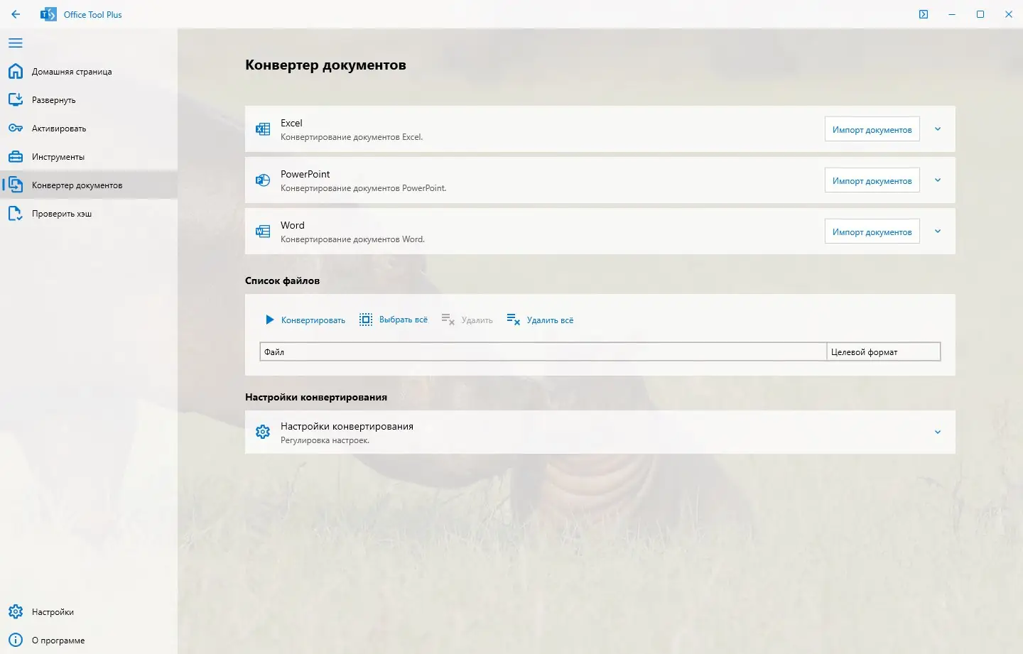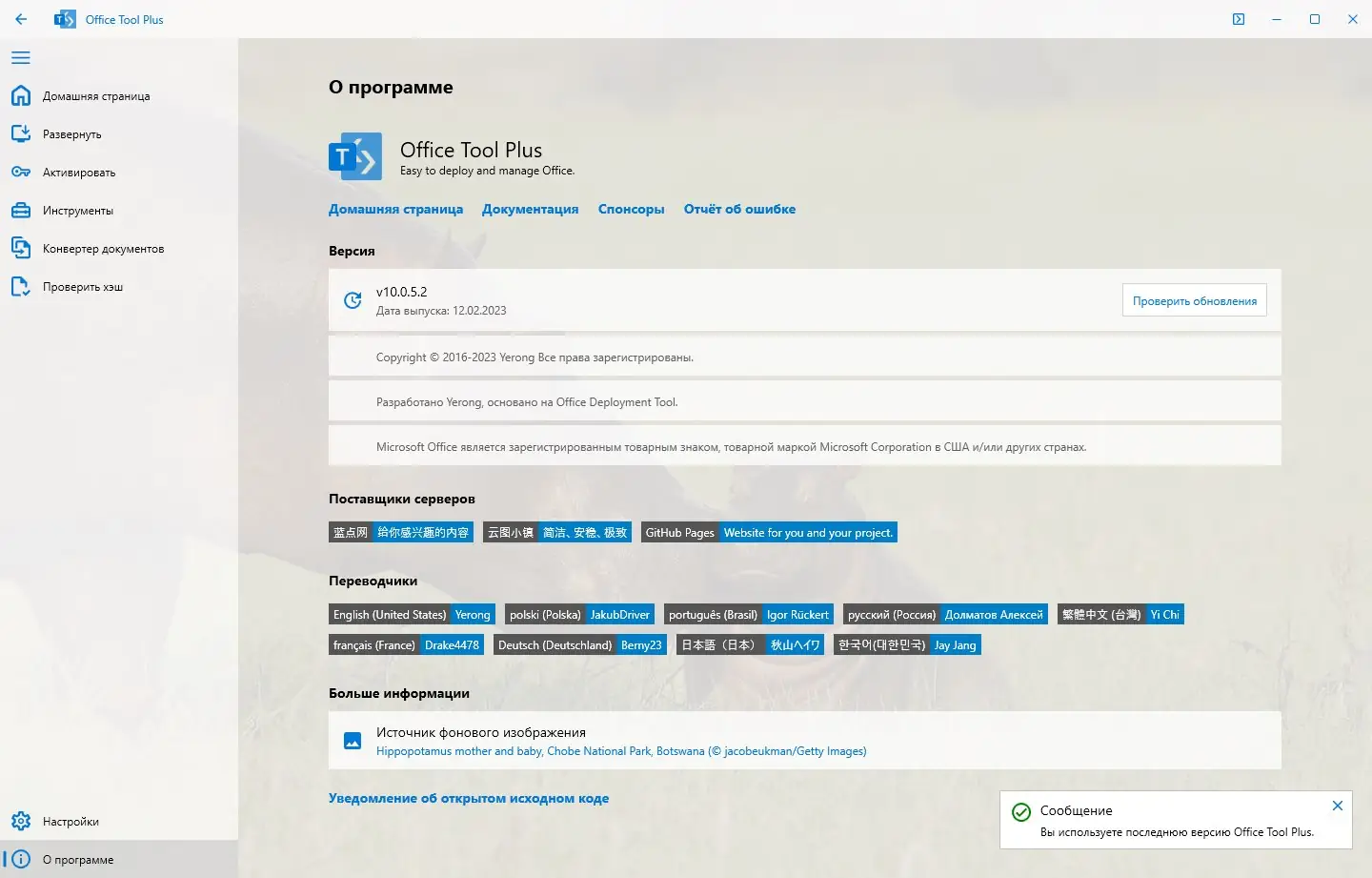 - Загрузка любой версии Office, поддержка всех каналов обновлений и языковых пакетов