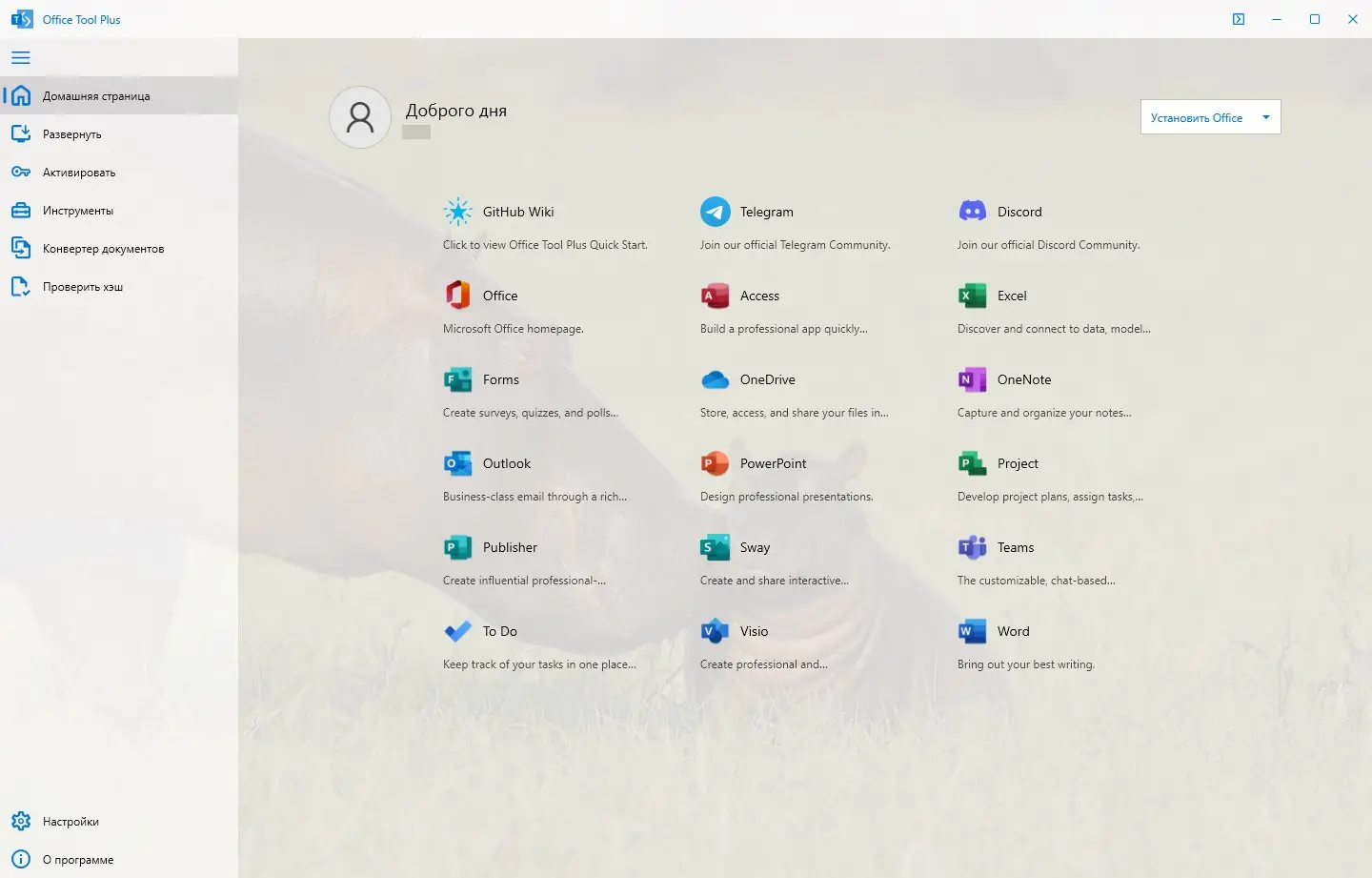 - Загрузите установочный файл Office Tool Plus с надежного источника или официального сайта.