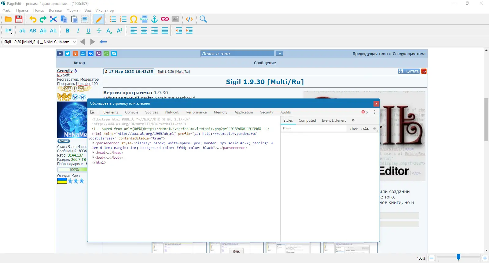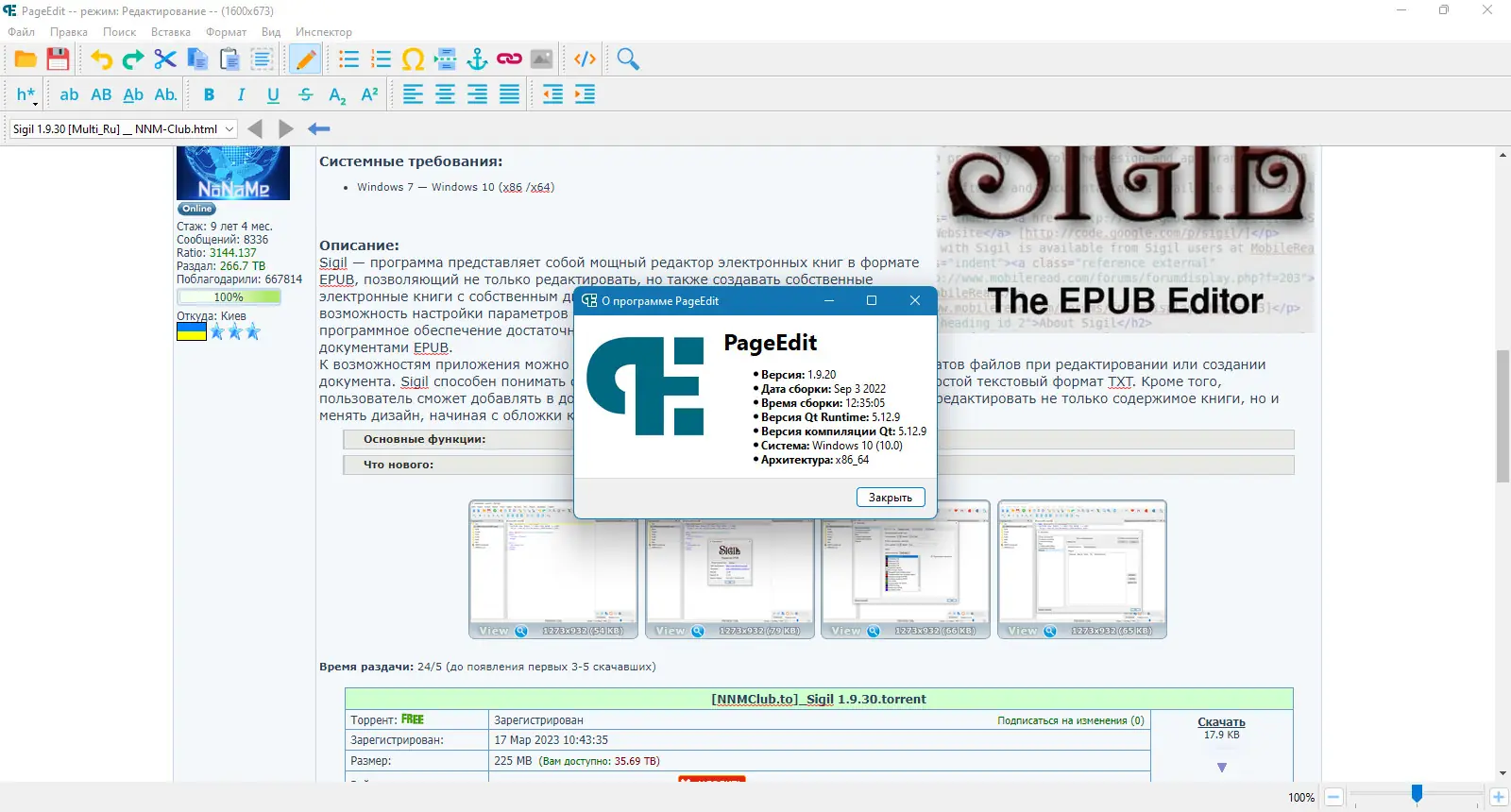 PageEdit — это мощный визуальный редактор XHTML, предназначенный для замены функции «Просмотр книги» из старых версий Sigil. Он также подходит как универсальное решение для редактирования XHTML-документов благодаря открытой архитектуре и бесплатной лицензии.