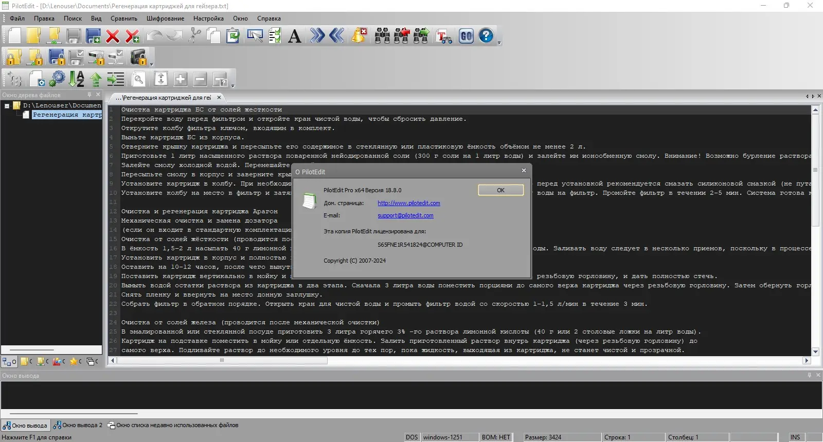 - Полная версия платная, однако есть бесплатная PilotEdit Lite с ограничениями.