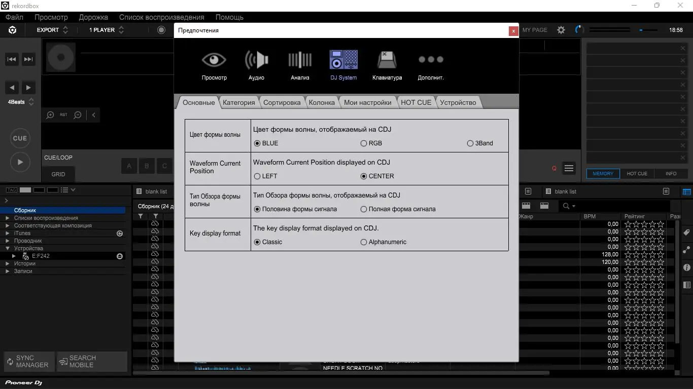 Для нормальной работы Pioneer DJ Rekordbox рекомендуется использовать следующие параметры системы: