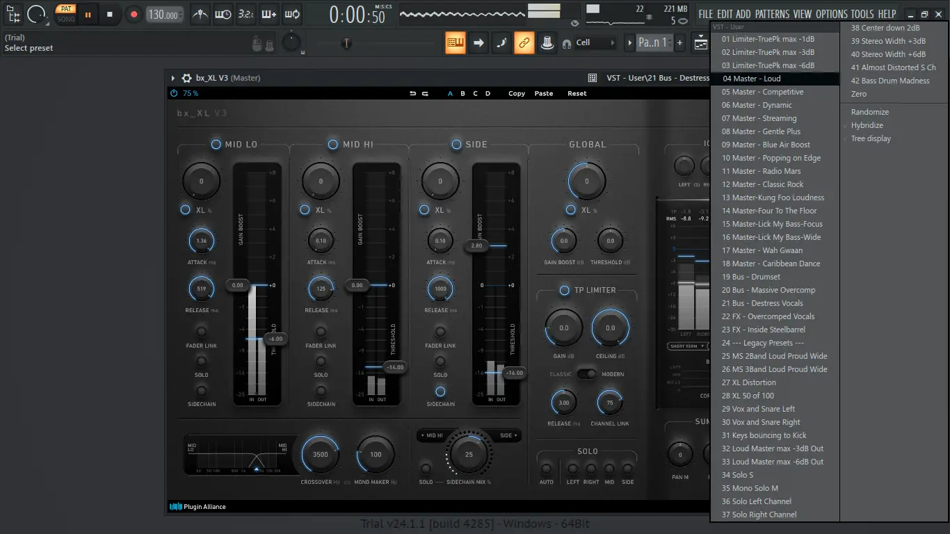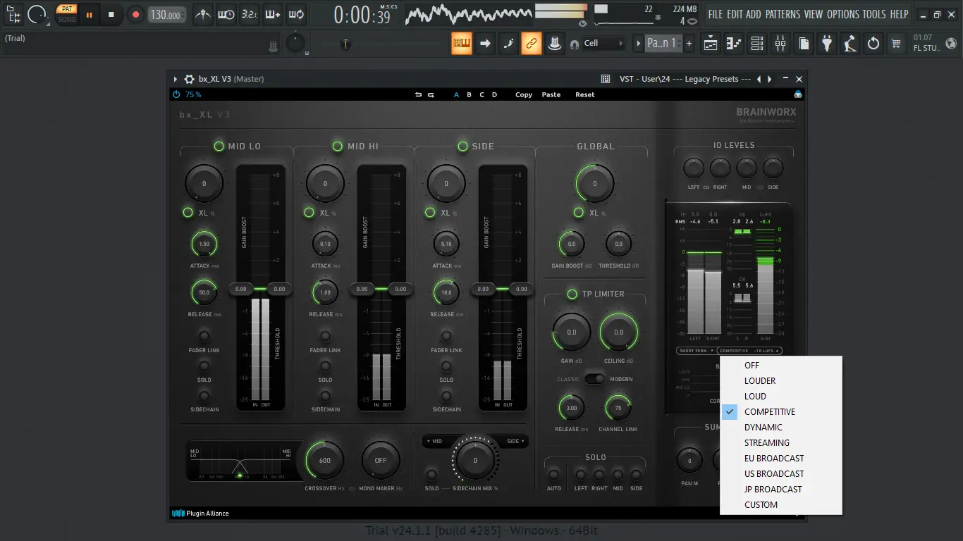 bx_XL V3 — мощный мастеринг-плагин, который позволяет создавать громкие и четкие миксы без потери качества звука, используя инновационные технологии обработки mid/side и расширенные лимитирующие функции.