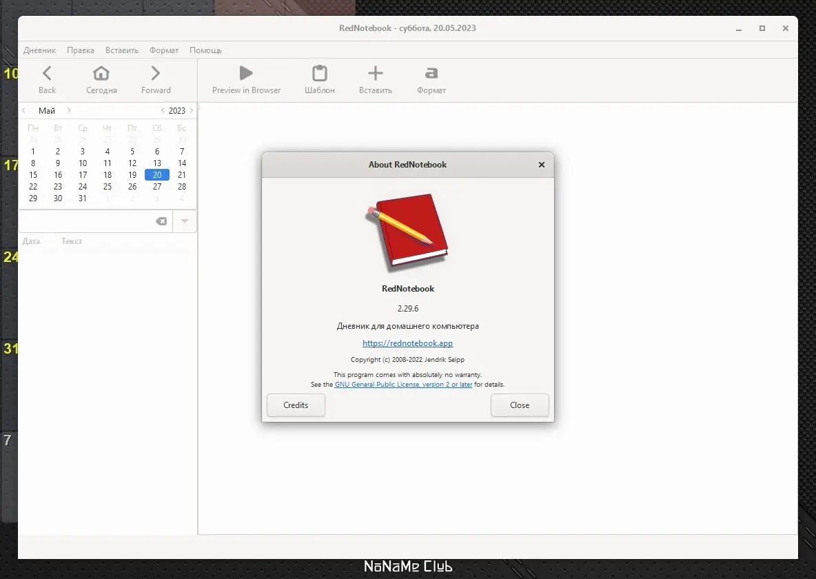 RedNotebook — это удобное и простое приложение для ведения электронного дневника или записной книжки, разработанное на базе GTK+ / Gnome и написанное на языке Python. Оно позволяет сохранять мысли, события и действия в структурированном виде и легко находить нужные записи с помощью автоматического облака тегов и встроенного календаря.