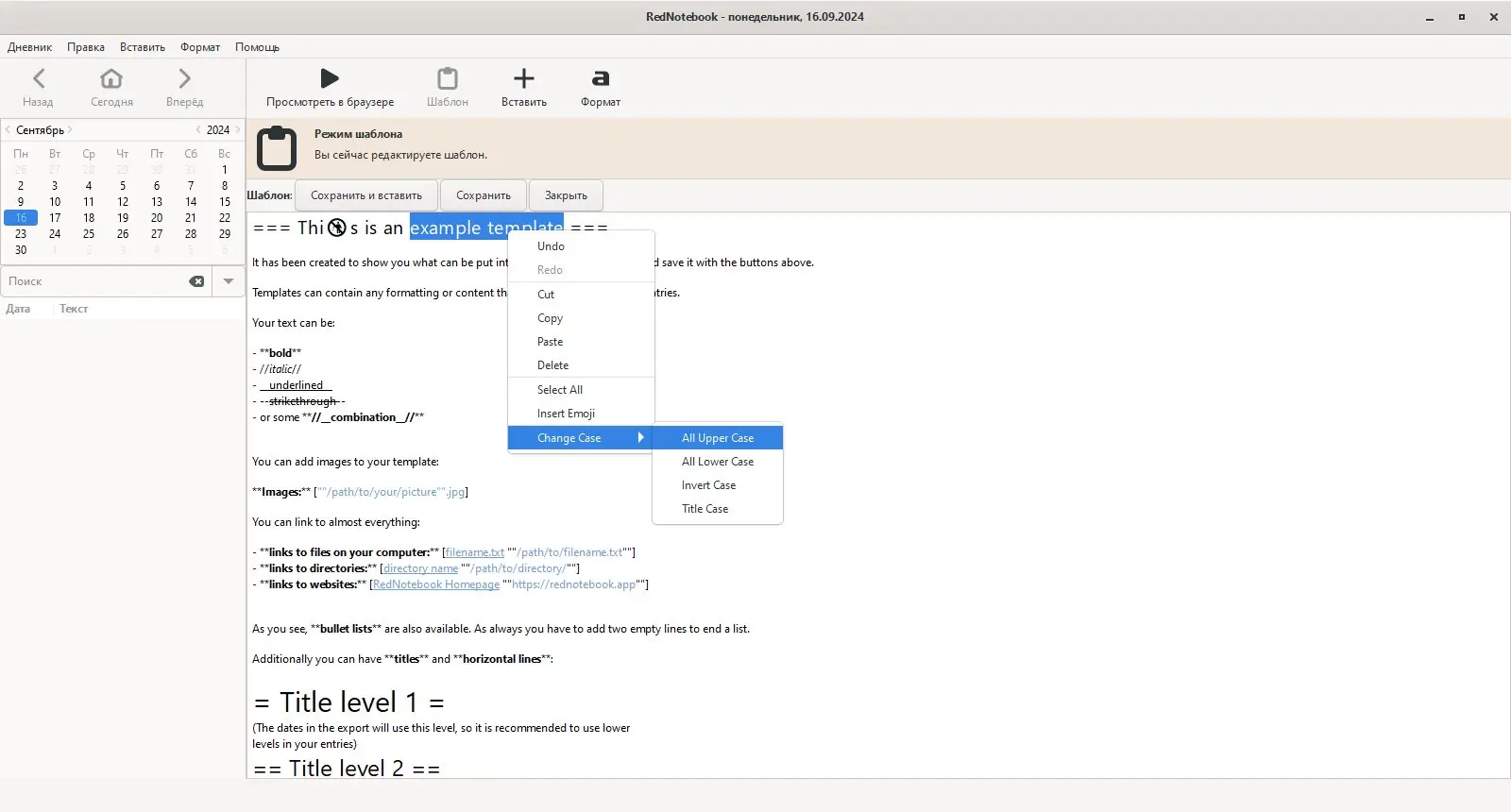RedNotebook является универсальным решением для ведения дневника и организации заметок. Программа легка в использовании и обладает необходимым функционалом для личного ведения записей, а также поддерживает экспорт и резервное копирование данных.