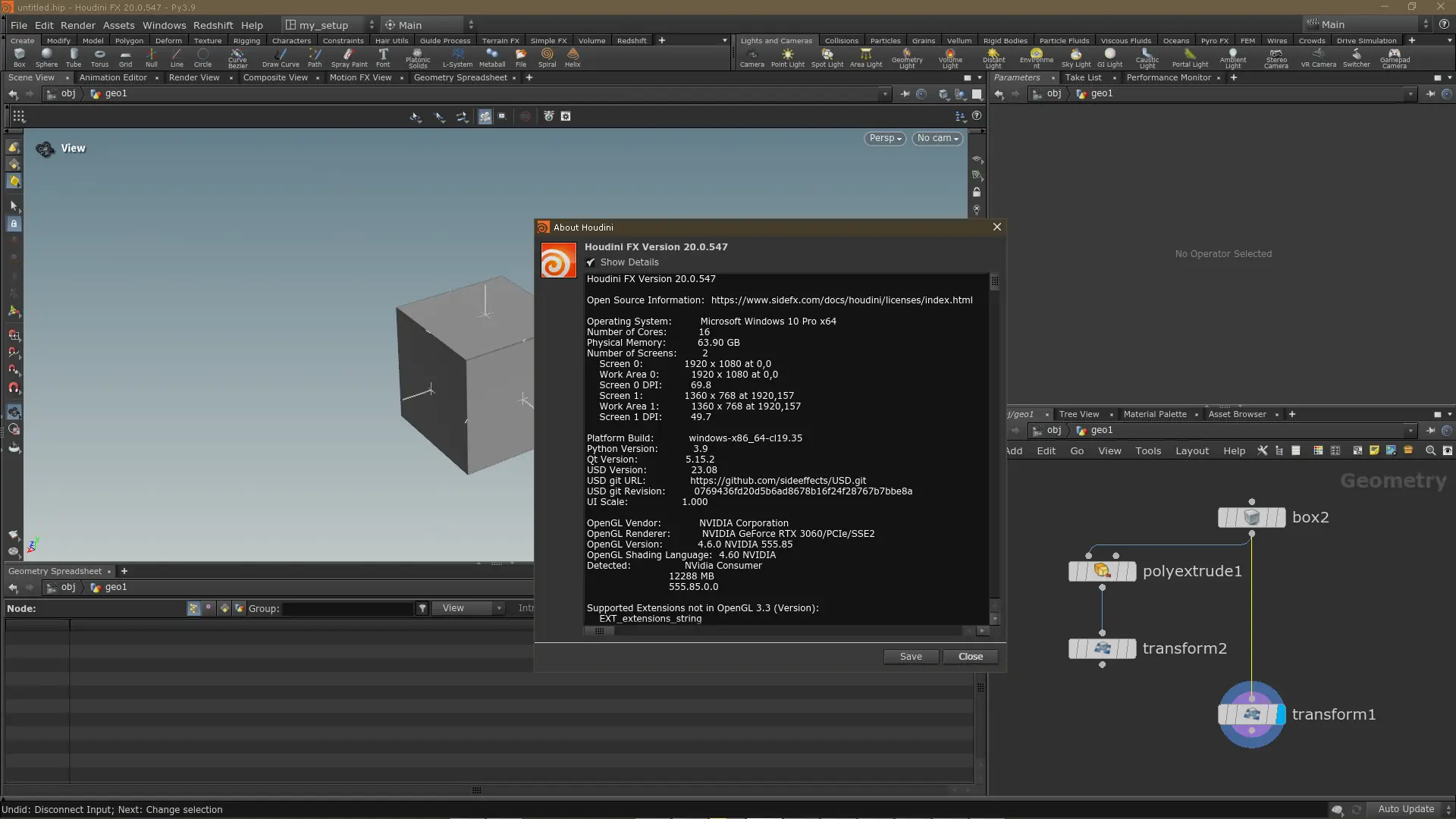 SideFX Houdini FX — это мощный профессиональный программный продукт для создания трёхмерных сцен и моделей. Он представляет собой среду для визуального программирования, которая позволяет создавать сложную и уникальную трёхмерную графику. Благодаря широкому набору инструментов и гибкости в настройках, данная программа широко используется в индустрии кино, анимации, игровых проектов и рекламных роликах.