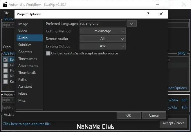 - Обработка аудиодорожек с возможностью выбора и копирования режимов