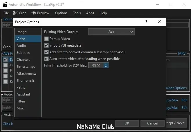 - Интеграция с редакторами видео AviSynth и VapourSynth
