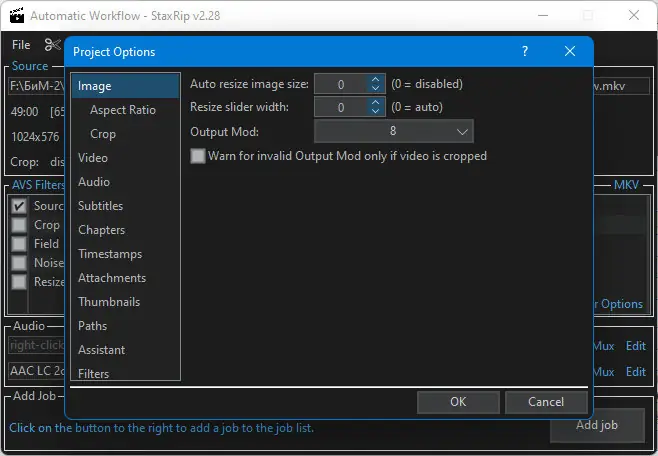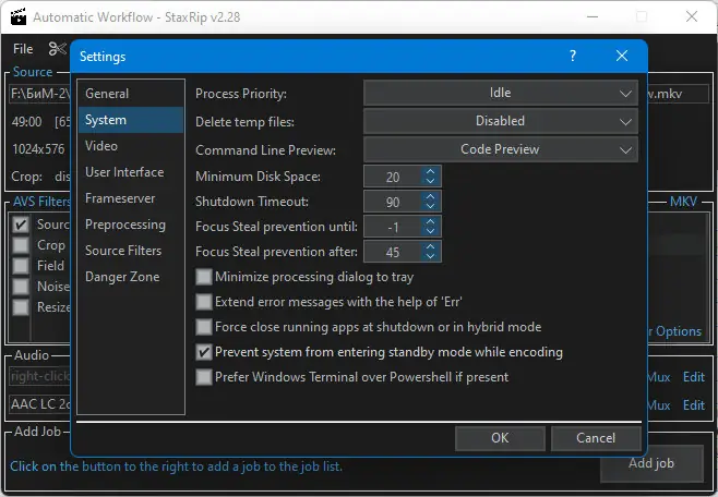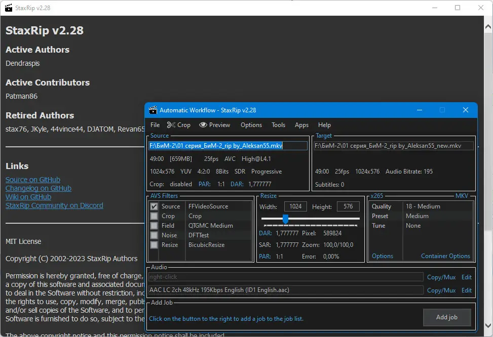 - Встроенные редакторы AviSynth и VapourSynth для расширенных настроек.