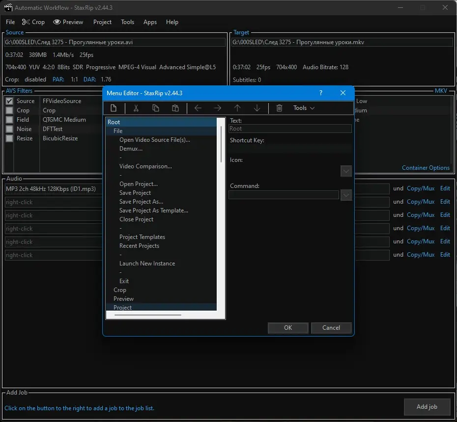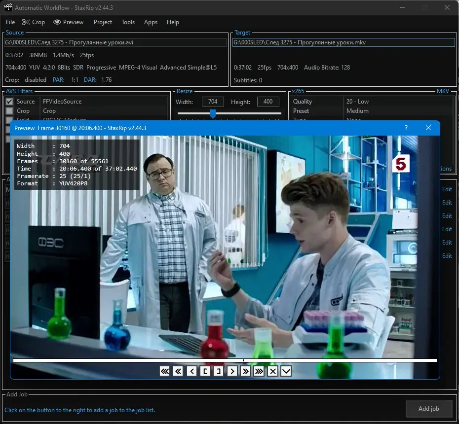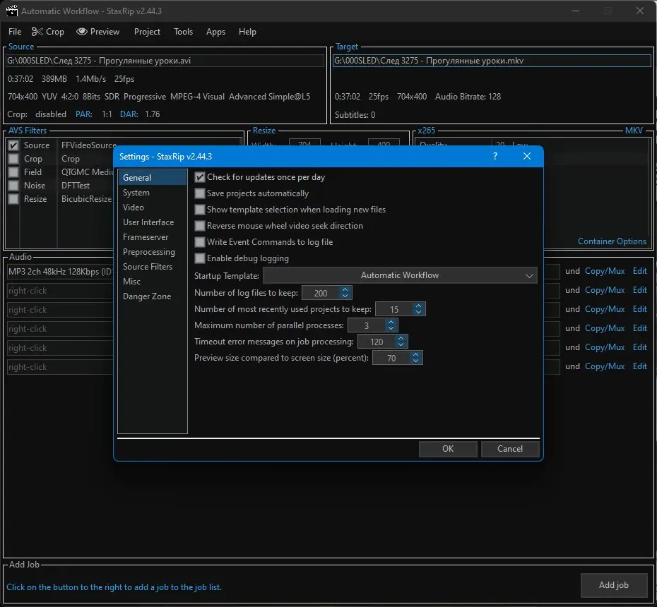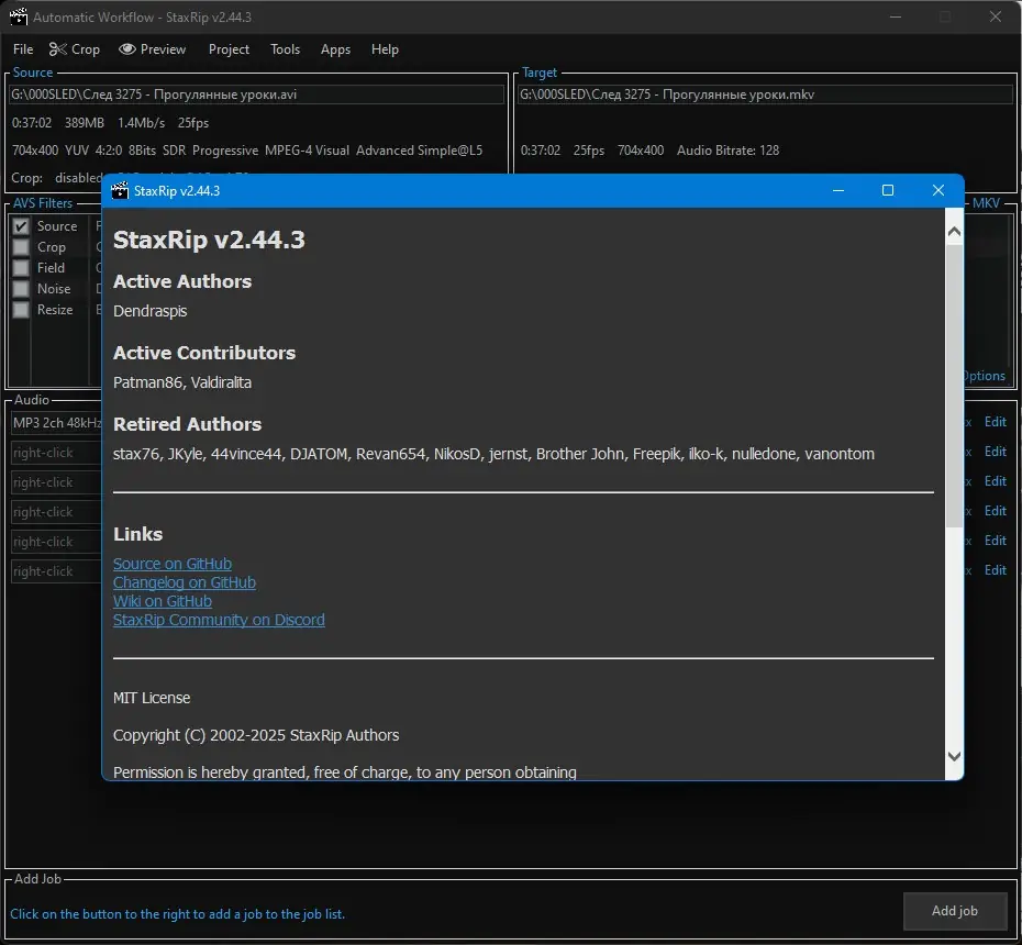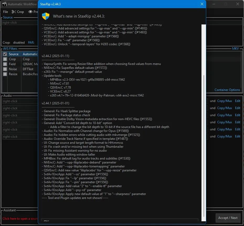 StaxRip — мощный универсальный инструмент для кодирования и обработки видео, объединяющий в себе широкий функционал для работы с различными форматами и настройками. Предназначен для профессионалов и энтузиастов, ищущих эффективное решение для преобразования видеоматериалов в популярные форматы.