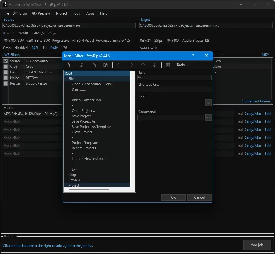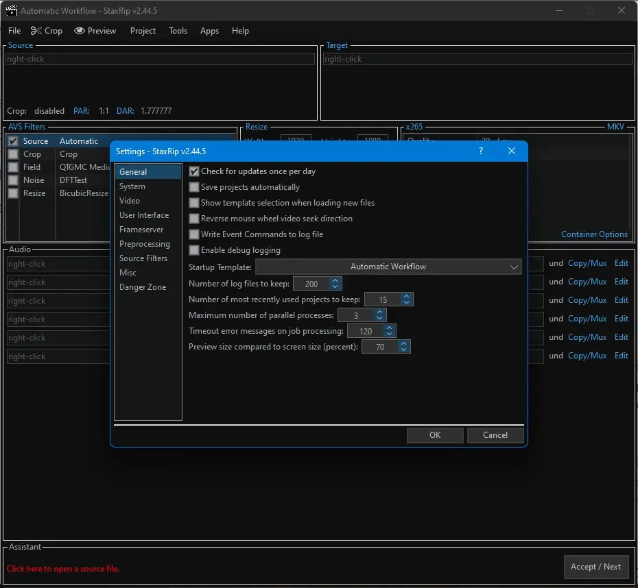 StaxRip — это мощный инструмент для кодирования видео, который позволяет легко преобразовывать Blu-ray, DVD, DVB и другие видеоформаты в популярные кодеки и контейнеры, такие как DivX, XviD, H.265/HEVC, H.264/AVC, VP9, а также MP4, MKV, WEBM и AVI. Встроенная поддержка различных видеокодеков и аудиоформатов обеспечивает высокое качество итогового файла и гибкие настройки процесса. Удобный интерфейс включает поддержку аппаратоутного кодирования для AMD, Intel и NVIDIA, а также встроенные редакторы AviSynth и VapourSynth, что расширяет возможности по созданию точных сценариев обработки. Кроме того, программа способна создавать короткие высококачественные анимации в форматах gif и aPNG. Дополнительно реализована пакетная обработка и автоматическое обновление, что делает работу с большим количеством файлов быстрой и удобной.