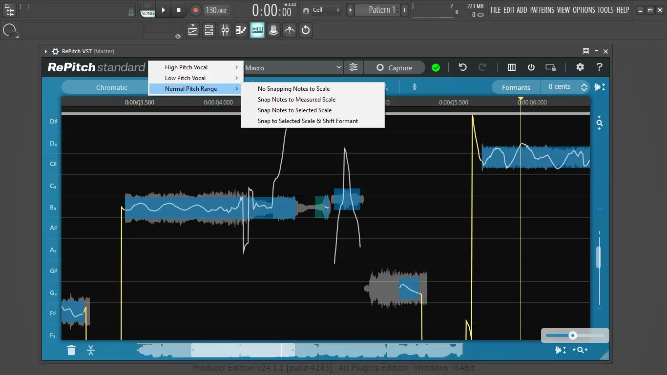 - Мгновенная привязка вокала к любой гамме с автоматической коррекцией.