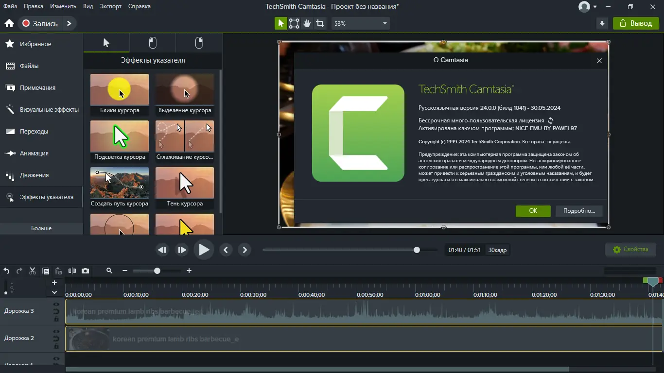 TechSmith Camtasia — это мощная программа для записи экрана и видеомонтажа, идеально подходящая для создания обучающих материалов, презентаций и технических видео. Она сочетает в себе простоту использования с профессиональными инструментами редактирования, позволяя получать высококачественный результат без необходимости иметь глубокие навыки видеомонтажа.