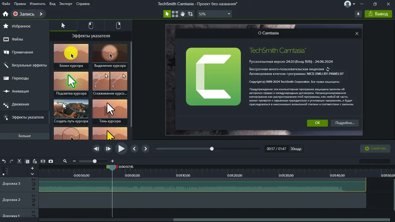 Камтасиа Студио — это мощное решение для захвата изображений с экрана в виде видеофайлов различных форматов. Встроенный видеоредактор позволяет накладывать эффекты, редактировать отдельные кадры и аудио, а также экспортировать финальные материалы в популярные форматы, такие как AVI, SWF, FLV, MOV, WMV, RM, GIF и CAMV. Программа способна захватывать действия, звук, системные звуки и даже изображение с веб-камеры, обеспечивая точное воспроизведение происходящего. Кроме того, возможна сборка исполняемых exe-файлов на основе записанных видео с встроенным проигрывателем. Это делает Camtasia идеальным инструментом для обучения, дистанционной поддержки, демонстраций продукта и презентаций.