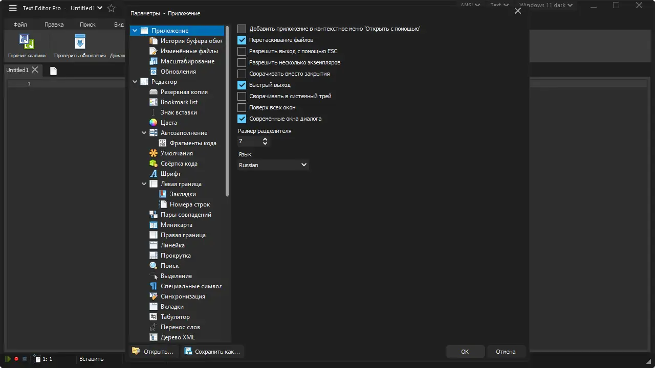- Если необходимо использование портативных настроек, убедитесь, что файл TextEditorPro.ini находится в одной директории с программой;