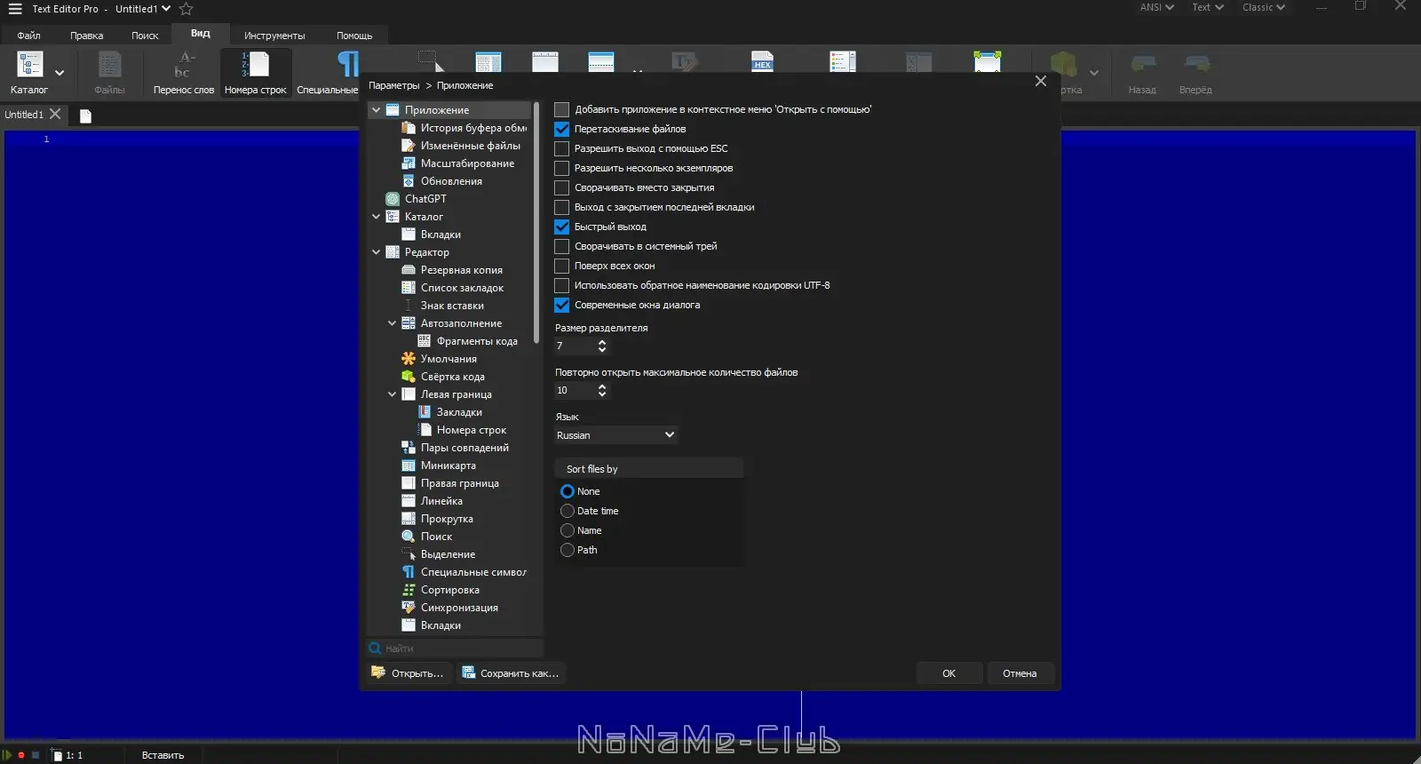 - Множество опций для настроек интерфейса и подсветки синтаксиса;