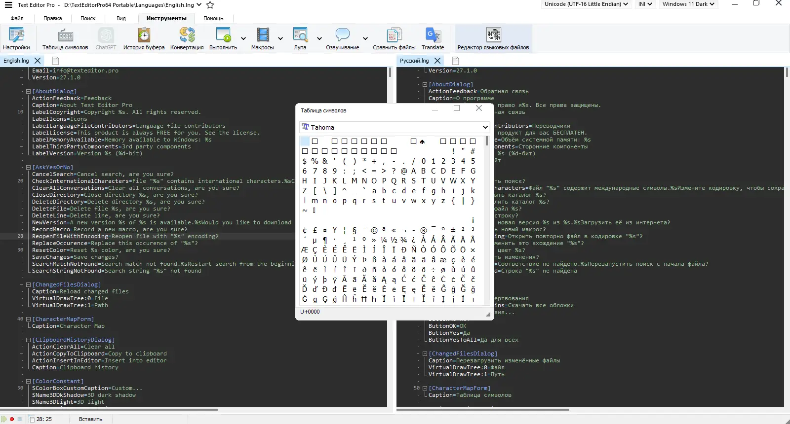 - Наличие таблицы символов юникода и инструментов преобразования числовых единиц;