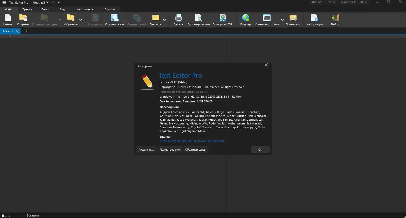 Text Editor — это небольшая утилита, которая позволяет качественно редактировать текст и сценарии с поддержкой подсветки синтаксиса для десятков языков программирования и сценарных языков. Программа обладает богатым функционалом, напоминающим известный редактор Notepad++, но при этом отличается меньшим размером и высокой скоростью работы. Работает во всех версиях ОС Windows, включительно с Windows 7, 8/8.1, 10 и 11. В последних выпусках добавлена поддержка русского языка. Text Editor активно используется профессиональными разработчиками благодаря наличию многочисленных опций для тонкой настройки, мультивкладочности и широкому функционалу, включающему редактор скинов, таблицу символов юникода, форматирование SQL, преобразование числовых единиц и многое другое. Программа написана на Delphi и C++, не имеет открытого исходного кода, но благодаря компактности и богатому набору функций остается популярным инструментом среди кодеров различных уровней.