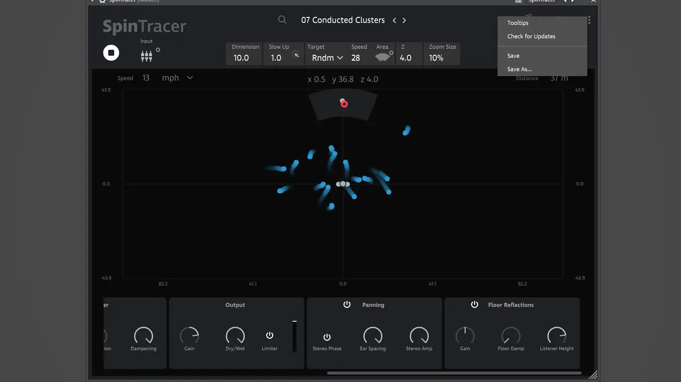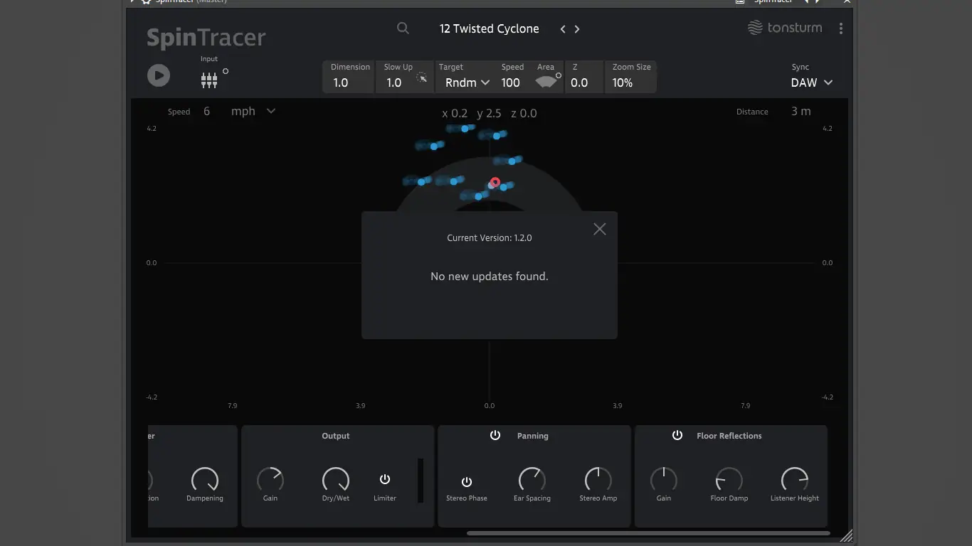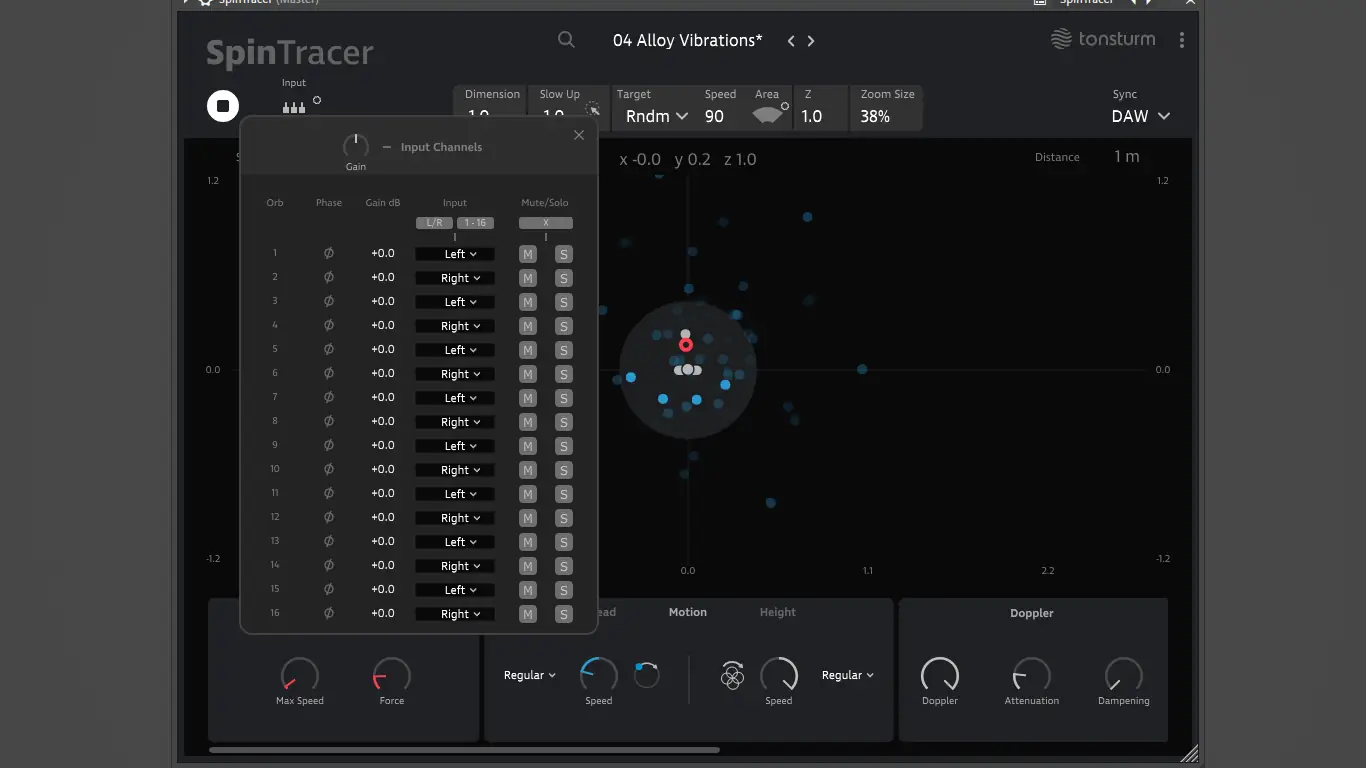 TONSTURM предоставляет пользователю полный контроль над движением звуковых объектов в трехмерном пространстве, управляемый с помощью мыши и гравитационных сил. Встроенный движок позволяет реализовать сложные круговые, органичные и рандомные движения, создавая визуально-акустические эффекты любой сложности. Благодаря поддержке до 16 объектов и каналов, а также интеграции технологий отражений и бинаурального панорамирования, программа подходит для профессиональной обработки звука, живых выступлений и студийной работы.