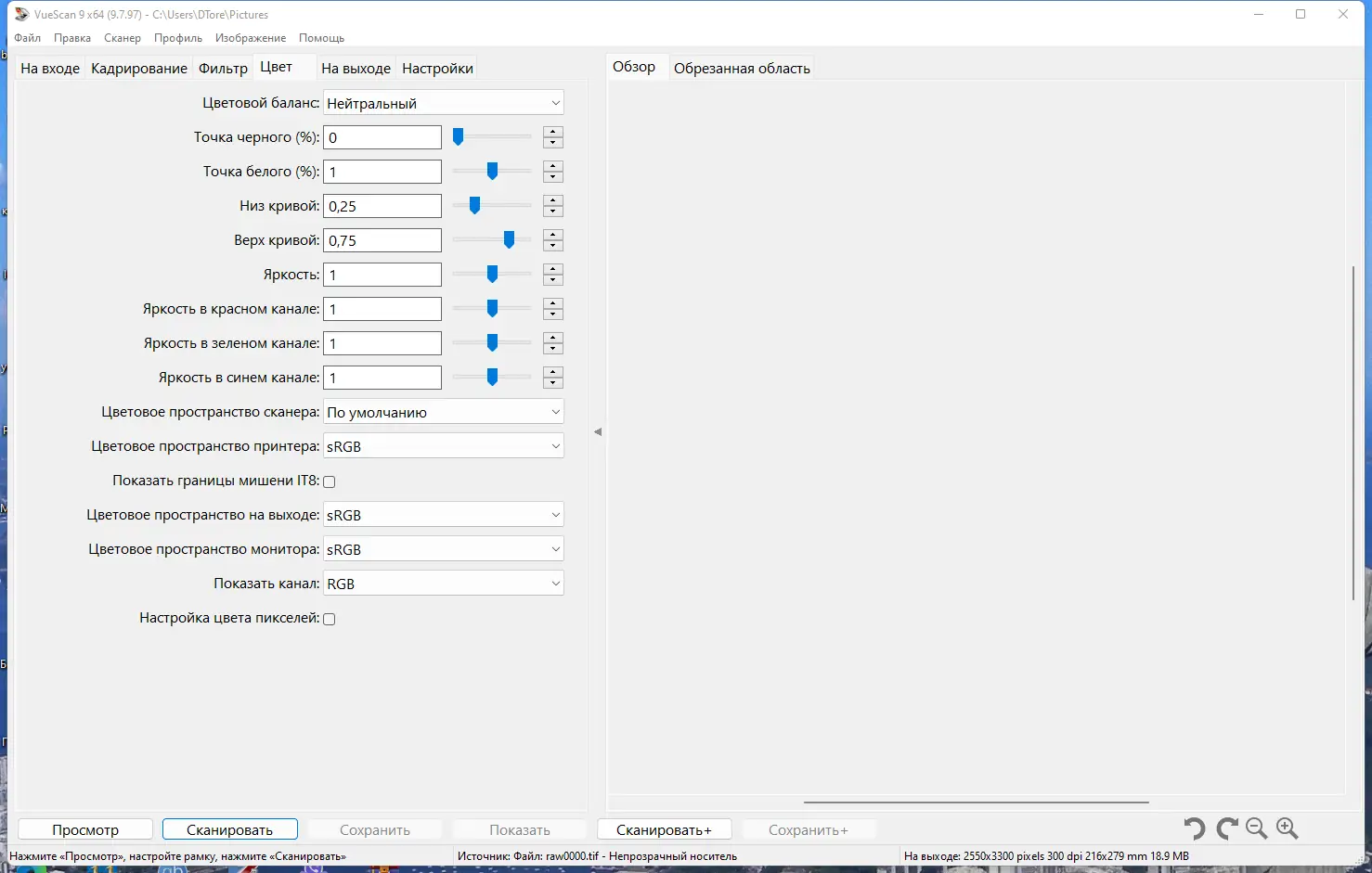 VueScan — универсальная программа для работы со сканерами различных производителей, таких как HP, Minolta, Nikon, Polaroid, Epson, Canon и другие. Она обладает расширенными возможностями настройки цветопередачи, глубины цвета и автоматической калибровки, что позволяет получать высокое качество изображений. Программа поддерживает автоматическое и ручное управление параметрами сканирования, пакетный режим и сохраняет исходные данные в RAW-файлы для последующей обработки. Особенно актуальна при работе с прозрачными оригиналами, такими как негативы и слайды, с поддержкой информации о цветовых характеристиках более 150 типов плёнок. Встроенные фильтры и средства коррекции помогают удалять дефекты, шумы, паразитные оттенки, что обеспечивает максимально точное воспроизведение оригинала.
