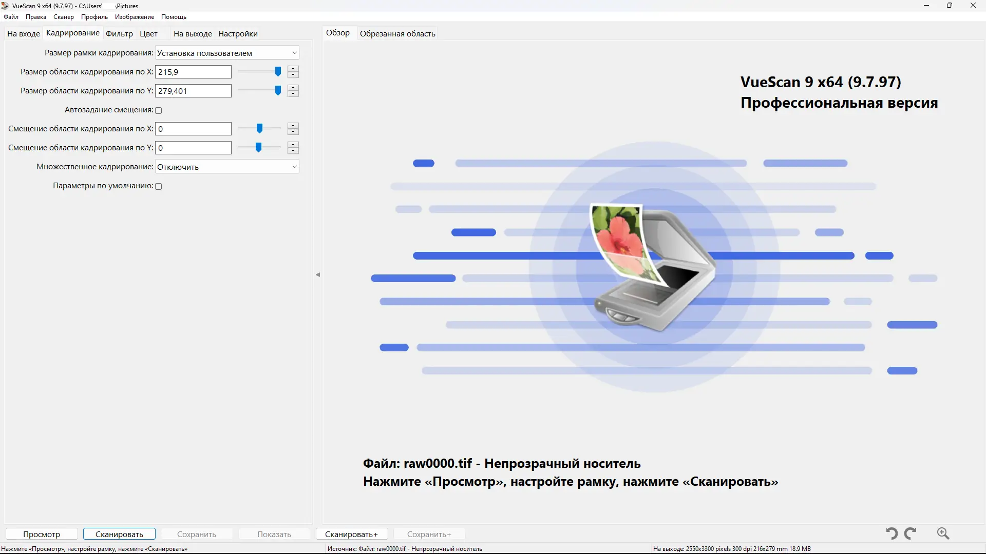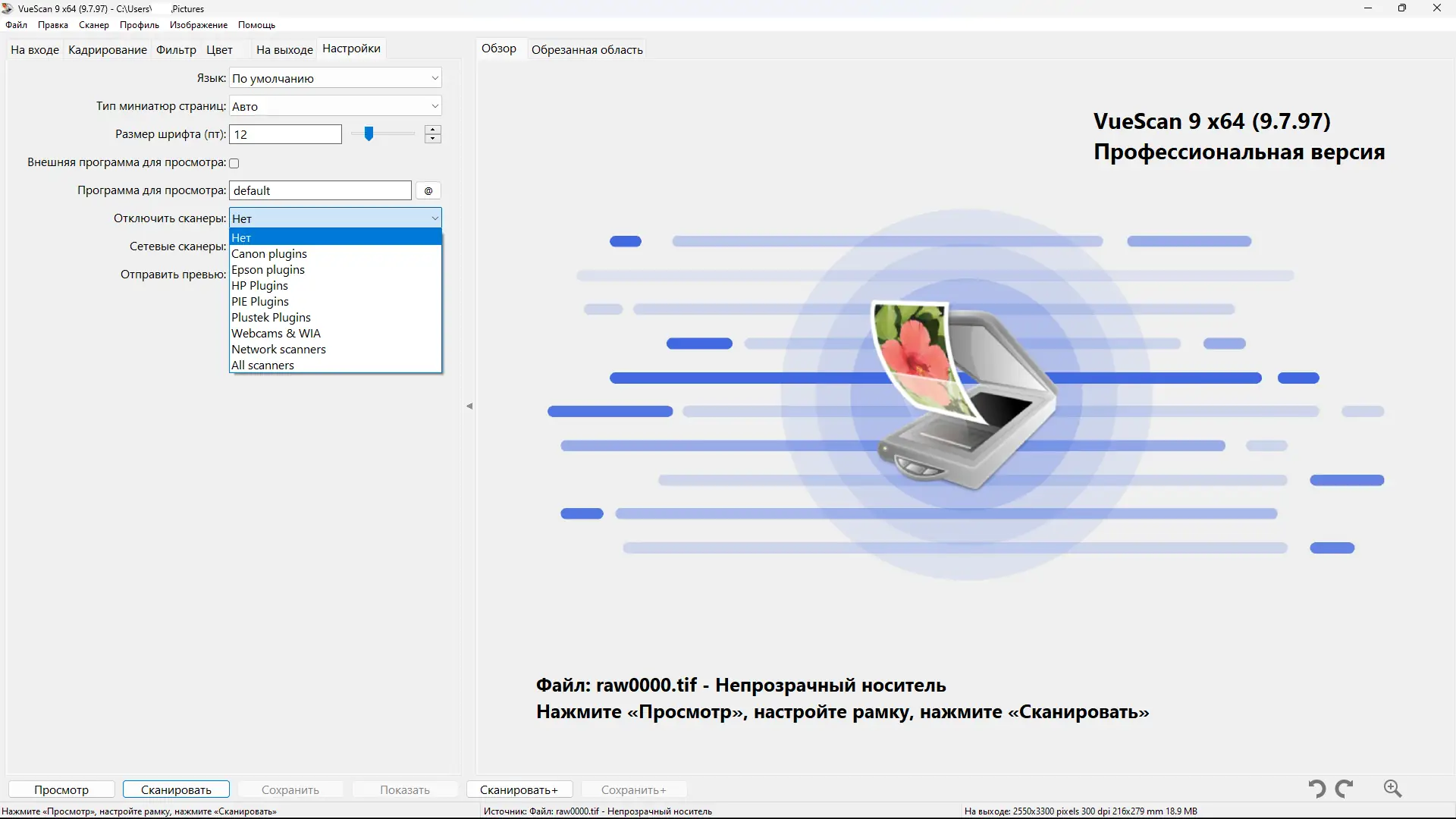 - Настройте параметры при первом запуске, установите профиль для работы с нужными типами оригиналов.