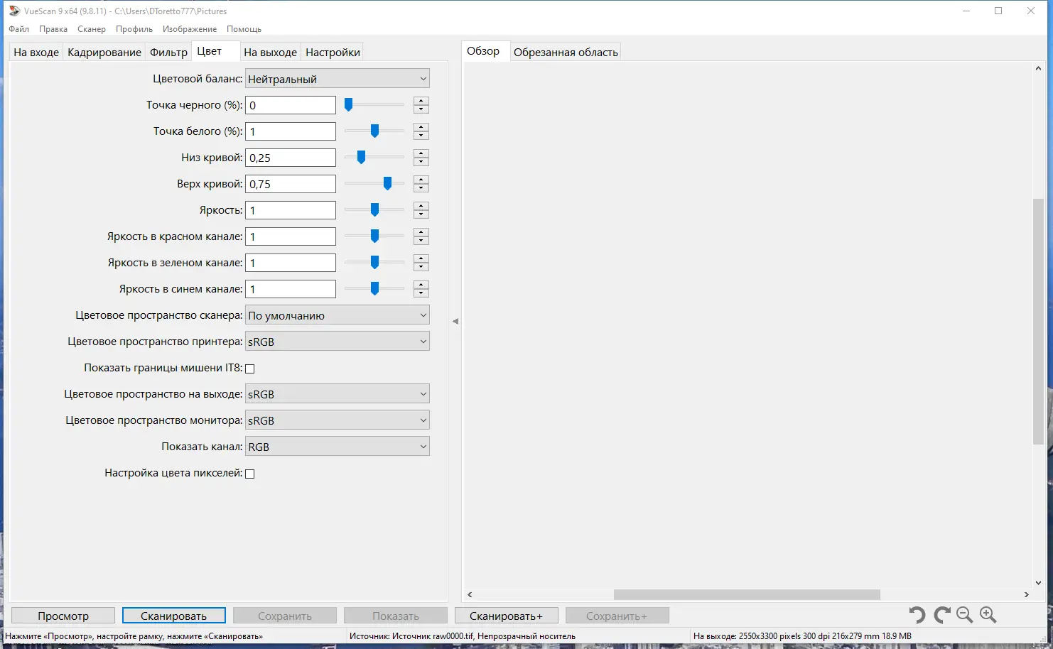 - Гибкая настройка параметров сканирования и цветокоррекции
