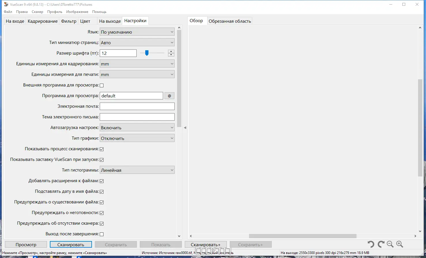 - Гибкие настройки параметров сканирования, включая глубину цвета, экспозицию и формат сохраняемых файлов.