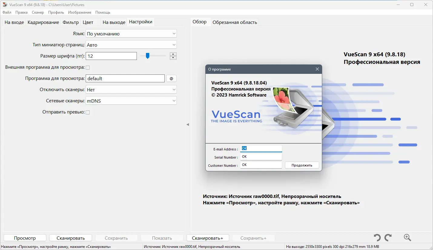 VueScan — мощная программа, предназначенная для улучшения работы со сканерами за счёт замены стандартного интерфейса и расширения функциональности. Она предлагает гибкие настройки, включая цветокоррекцию, многопроходное и пакетное сканирование, аппаратную регулировку экспозиции и выбор глубины цвета. Поддерживая более 500 моделей сканеров и 185 моделей RAW-файлов цифровых камер, программа обеспечивает качественную обработку изображений и расширенные возможности цветовой калибровки.