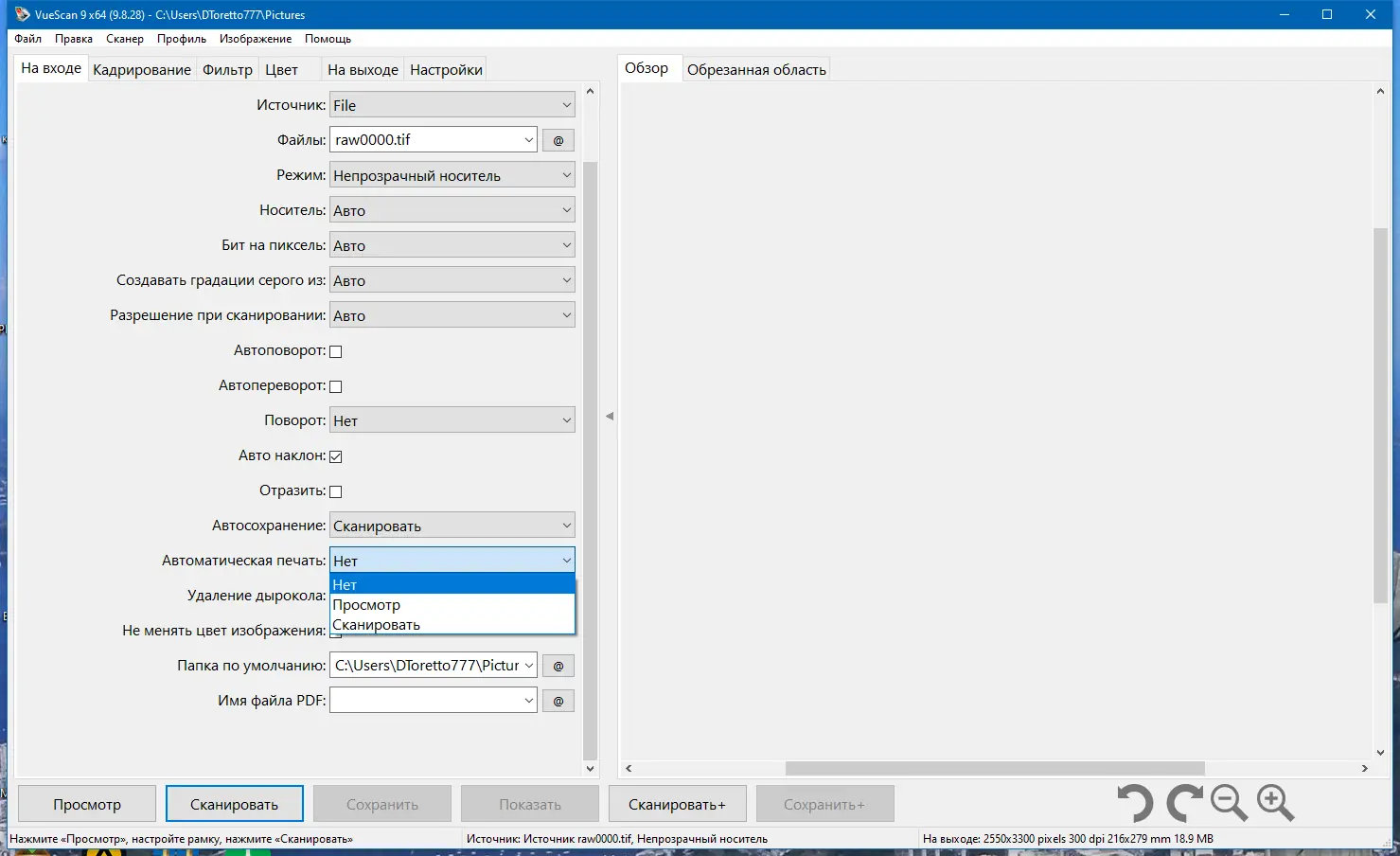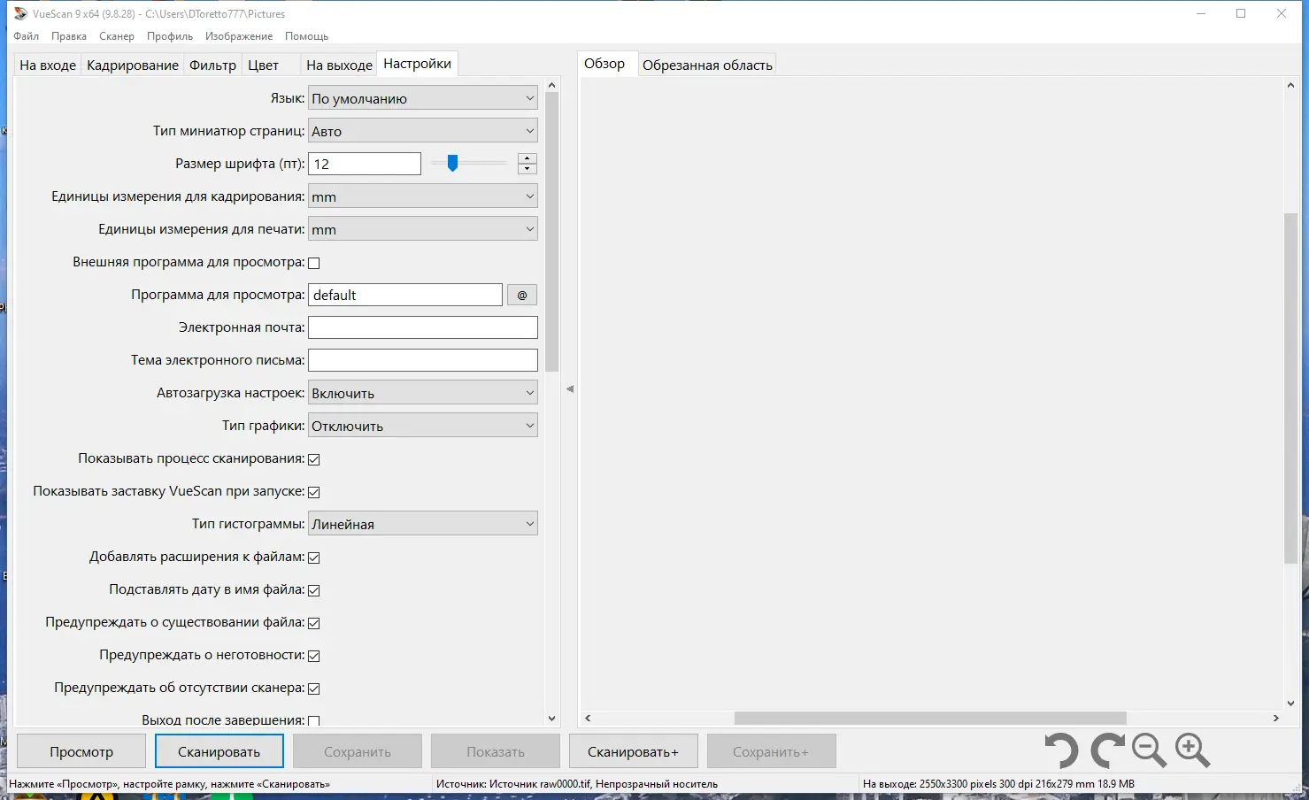 - Настроить параметры сканирования под свои нужды, включая профили и цветовые настройки.