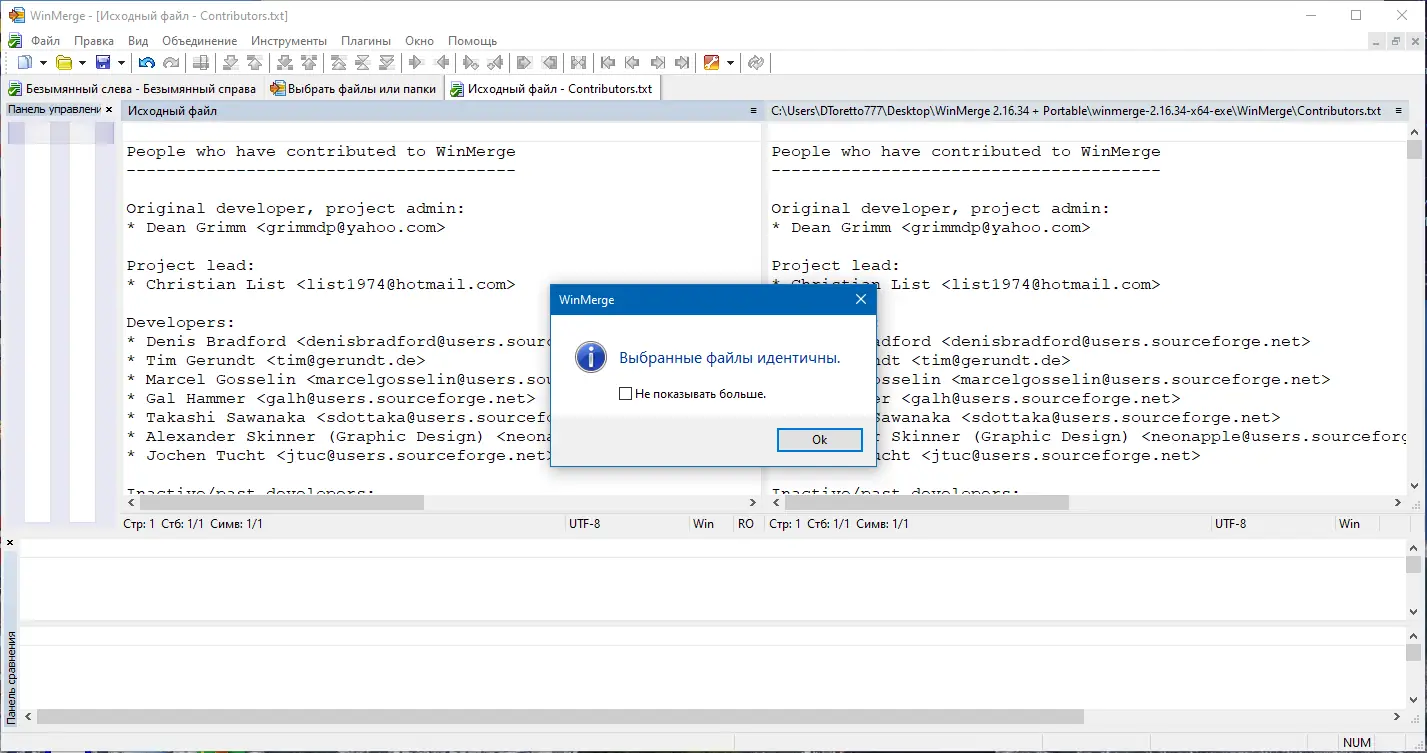 - Сравнение файлов с поддержкой Unicode и различных текстовых форматов