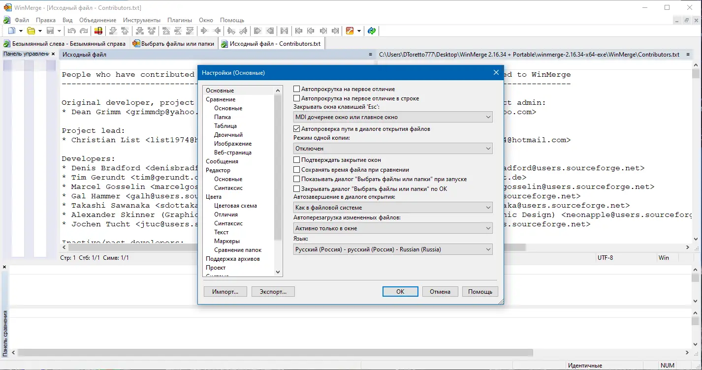 - После установки запустить WinMerge и настроить интерфейс и параметры сравнения по необходимости.