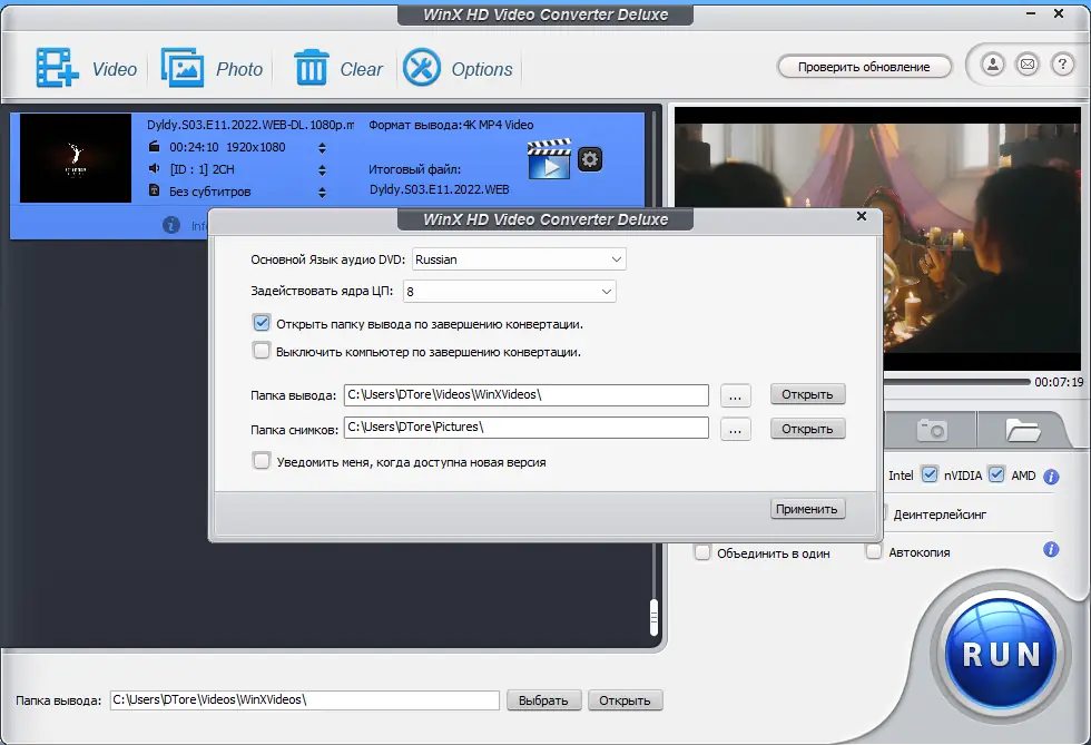 - Поддержка пакетного преобразования и многоядерных процессоров для ускорения работы.