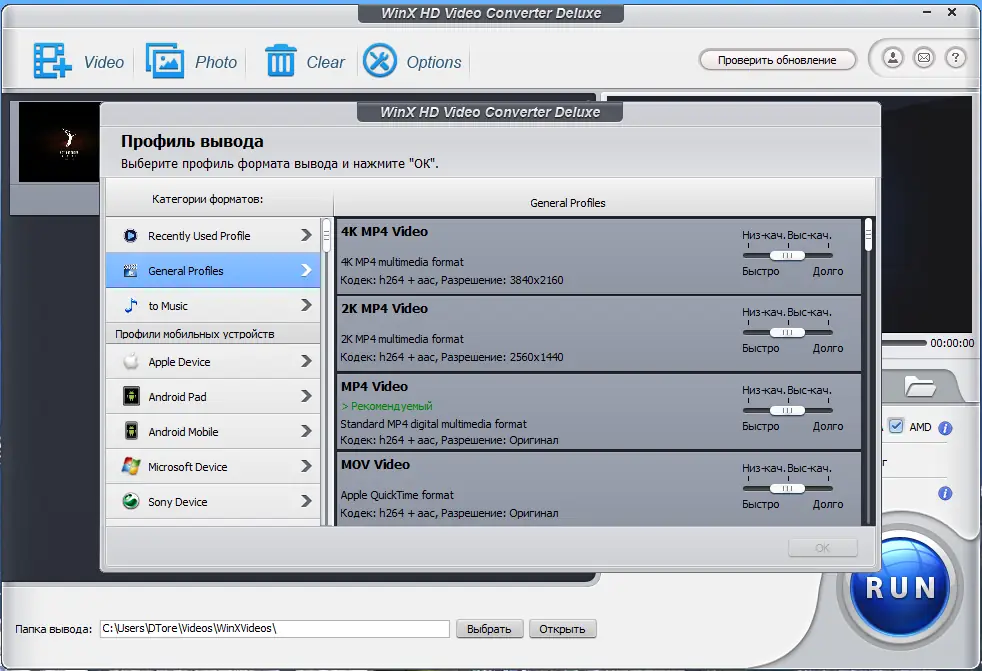 - Конвертация видео популярных форматов, включая HD и 4K, с высоким качеством.
