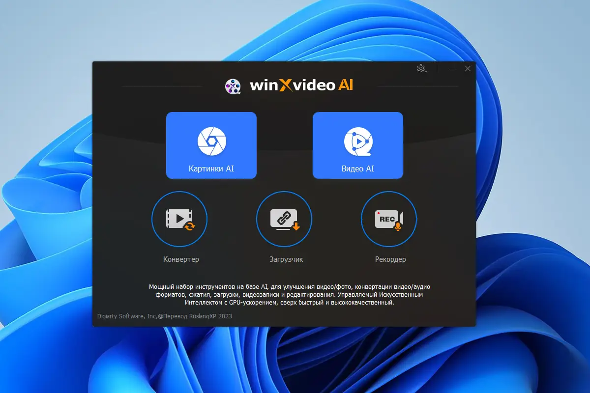 - Запустить файл Winxvideo AI.exe или его аналог для портативной версии