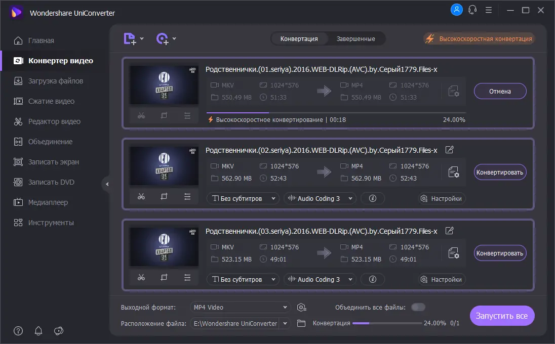 - Высокая скорость конвертации — до 30-кратной без потери качества
