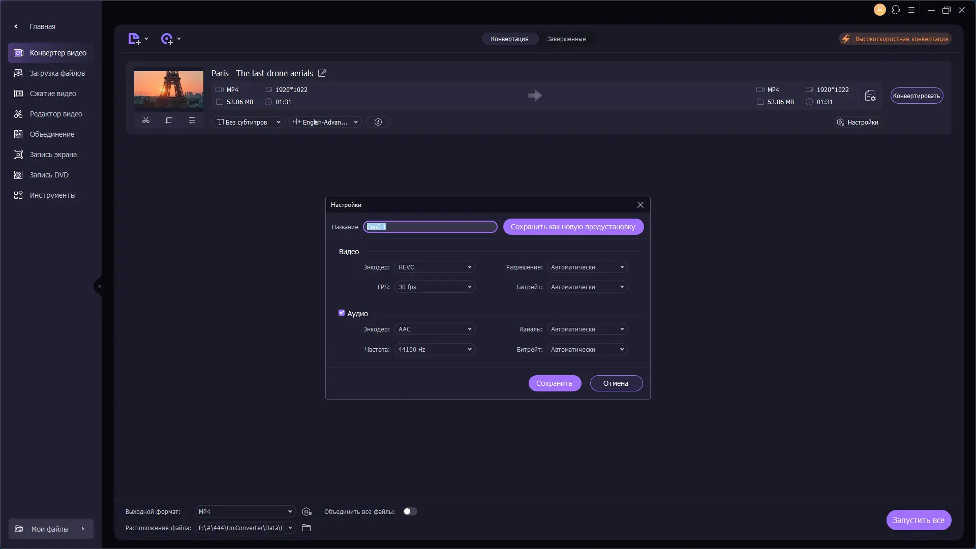 - Высокая скорость конвертации с аппаратным ускорением