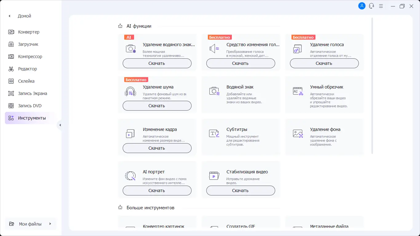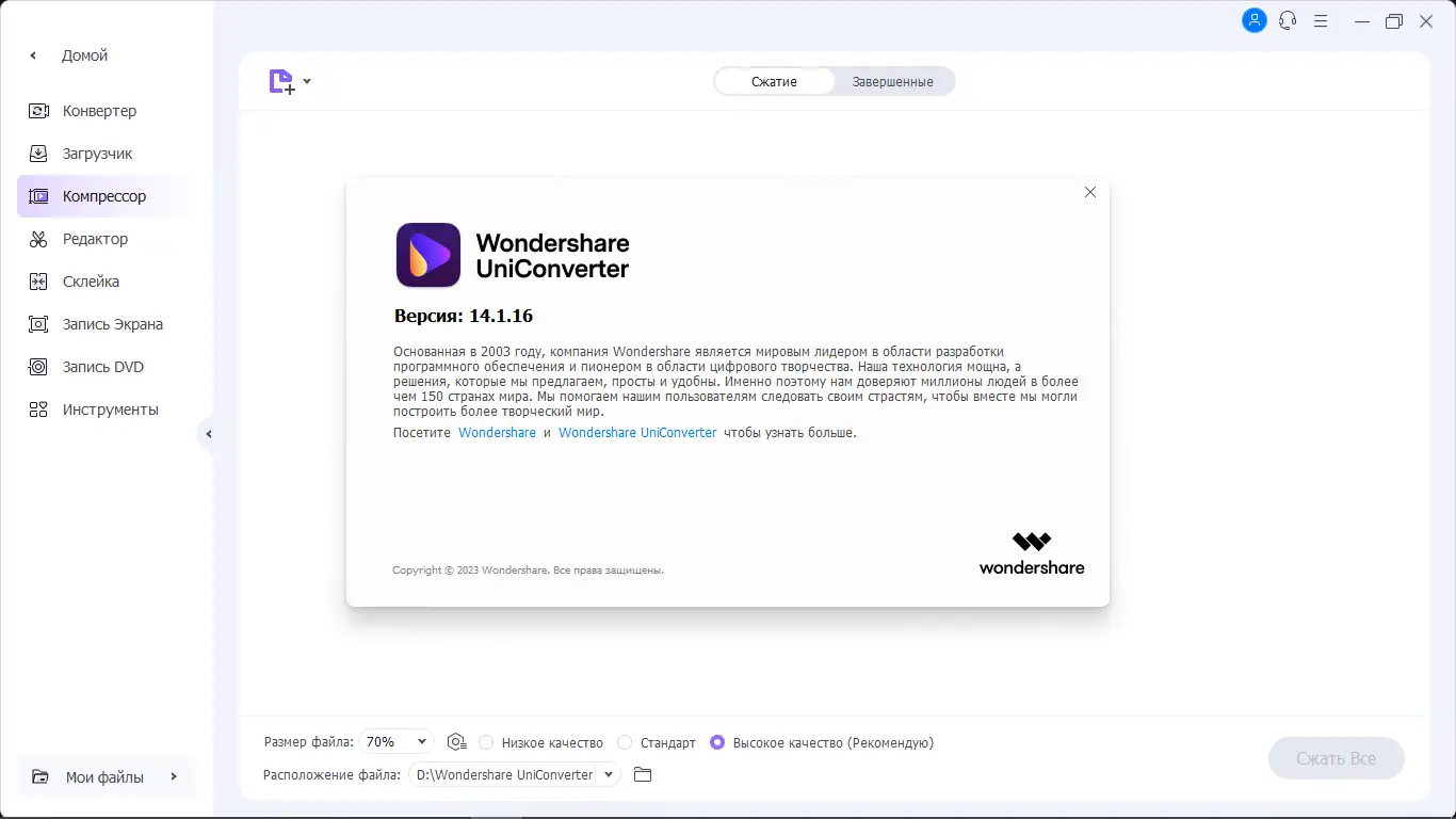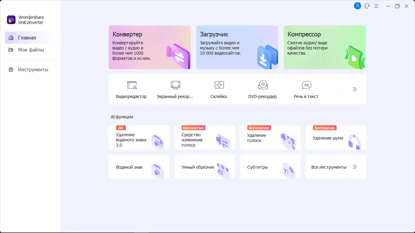 Wondershare UniConverter — это универсальный видеоконвертер, который сочетает простоту использования с богатым функционалом. Он поддерживает конвертацию, редактирование, увеличение, скачивание, запись на диск, организацию и захват видеосигнала в более чем 159 форматах. Наслаждайтесь отличным качеством изображений в формате 4K и высокой скоростью конвертации до 30 раз без потери качества. Благодаря интуитивному интерфейсу и расширенным возможностям, Wondershare UniConverter станет незаменимым помощником для работы с медиафайлами.