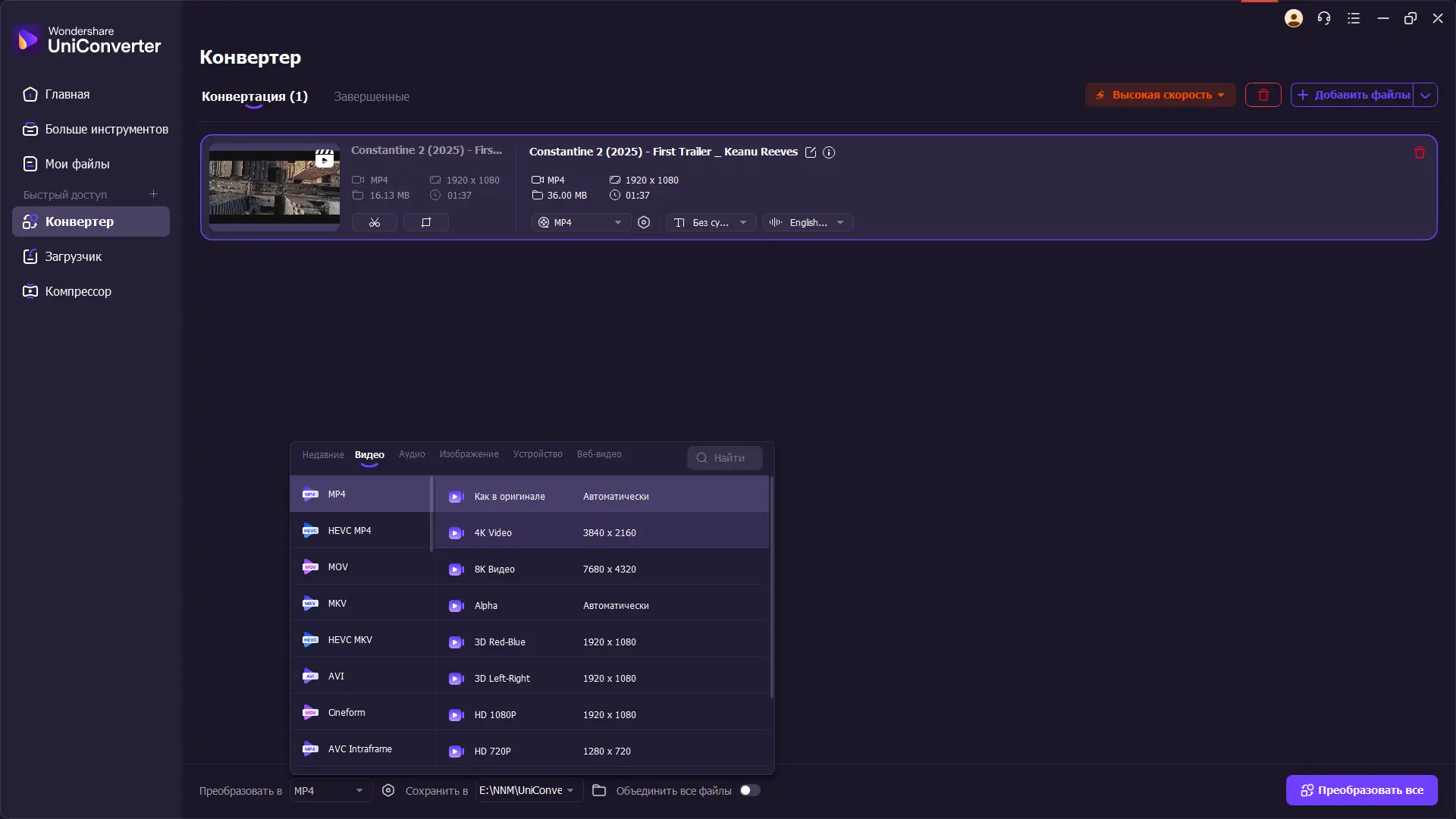 - Высокая скорость преобразования видеоконтента с аппаратным ускорением.